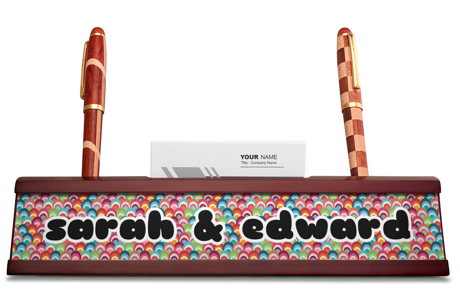 Shape + Symbol Designs for Red Mahogany Nameplates with Business Card Holder