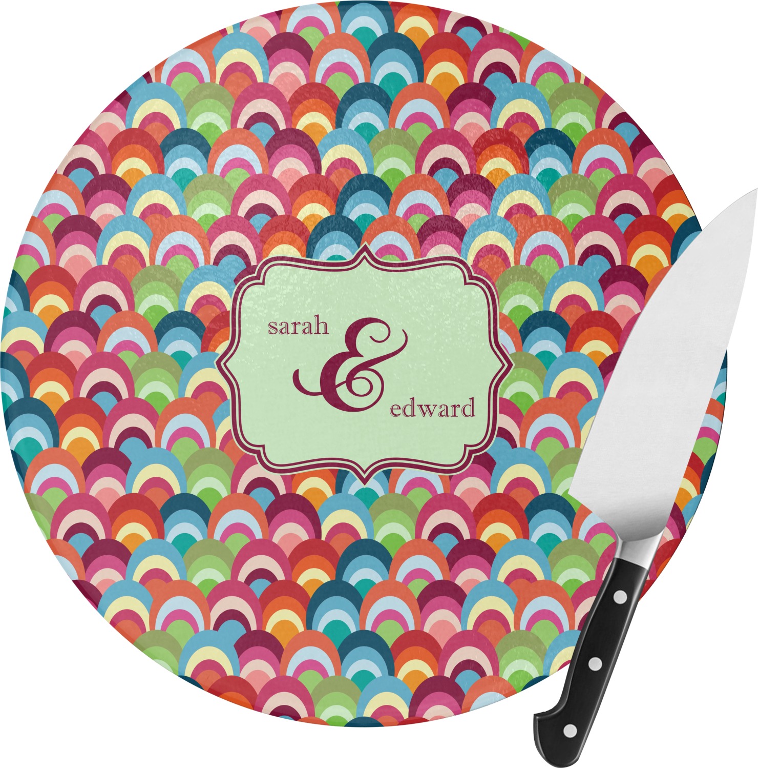 Prep your meals with passion when you use our personalized round cutting boards. The personalization options we offer really make them one of a kind and they are available in delightful colors and designs that might just keep you smiling instead off crying when you're cutting onions!!