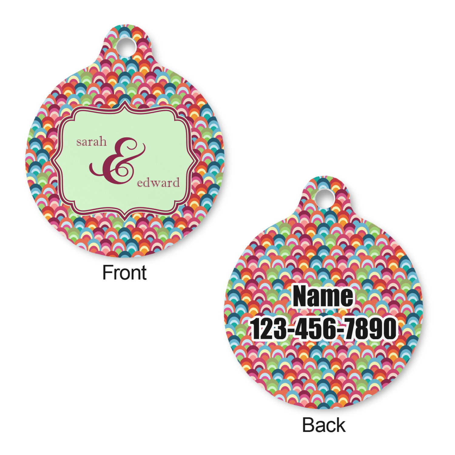 Go ahead; skip the monotony of plain pet ID tags with your very own, customized & personalized, round pet tag! This pet ID tag, fitting for both cats and dogs, will catch the eye of any onlooker (humans, canines, and felines, alike!) and accentuate your pet's individual personality.