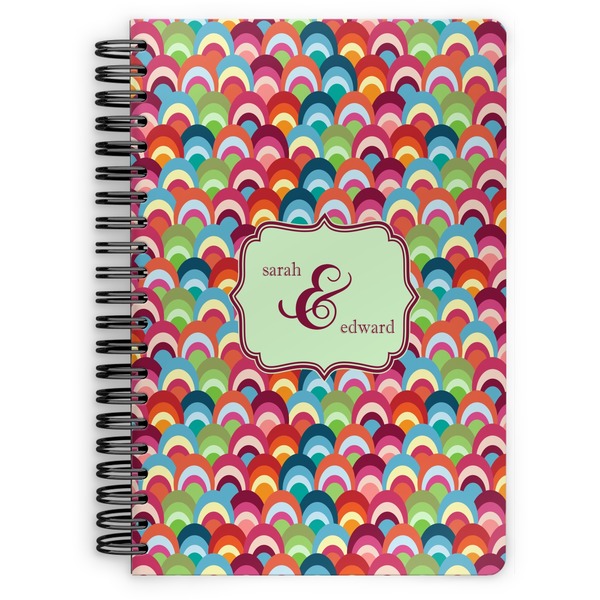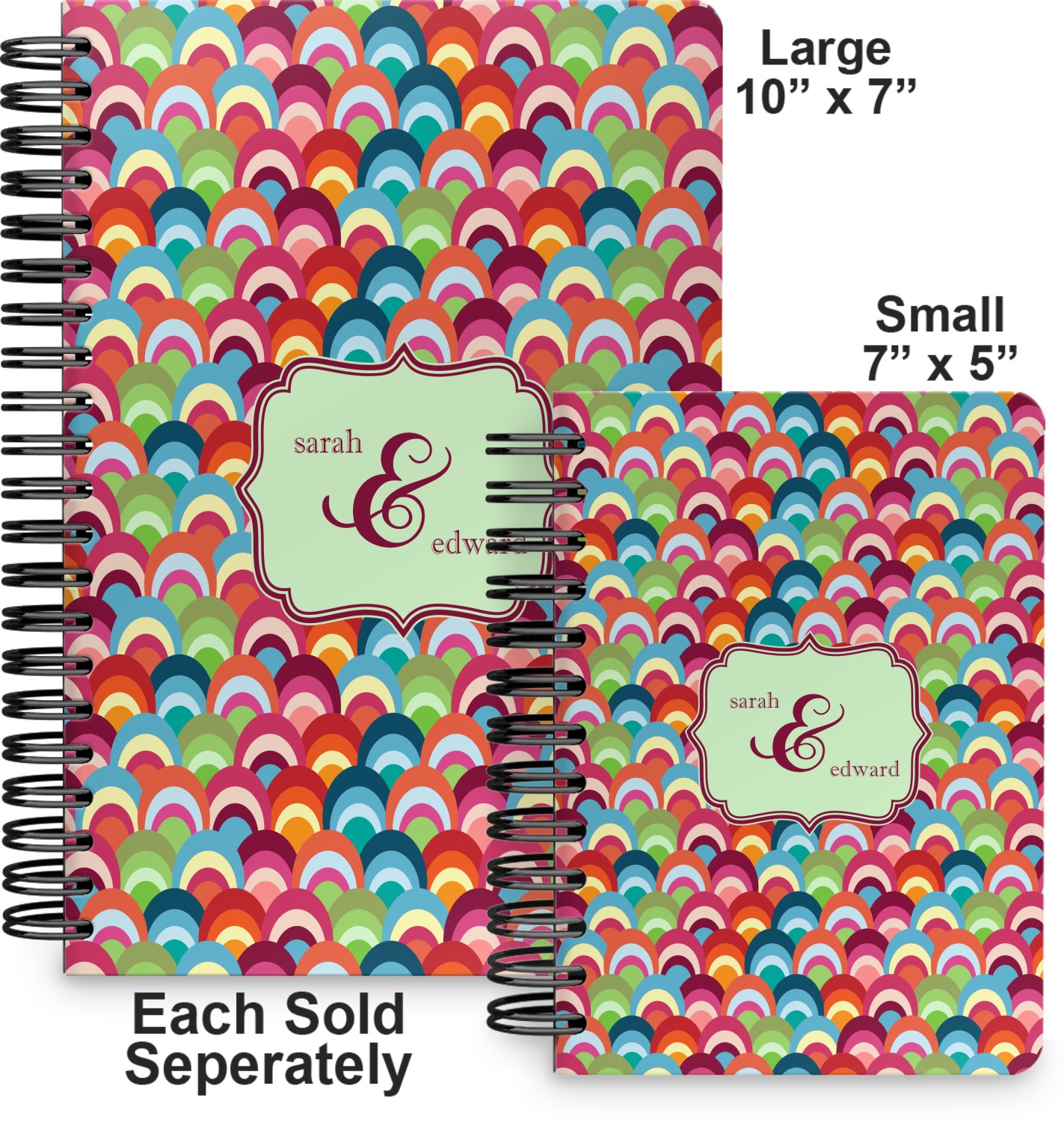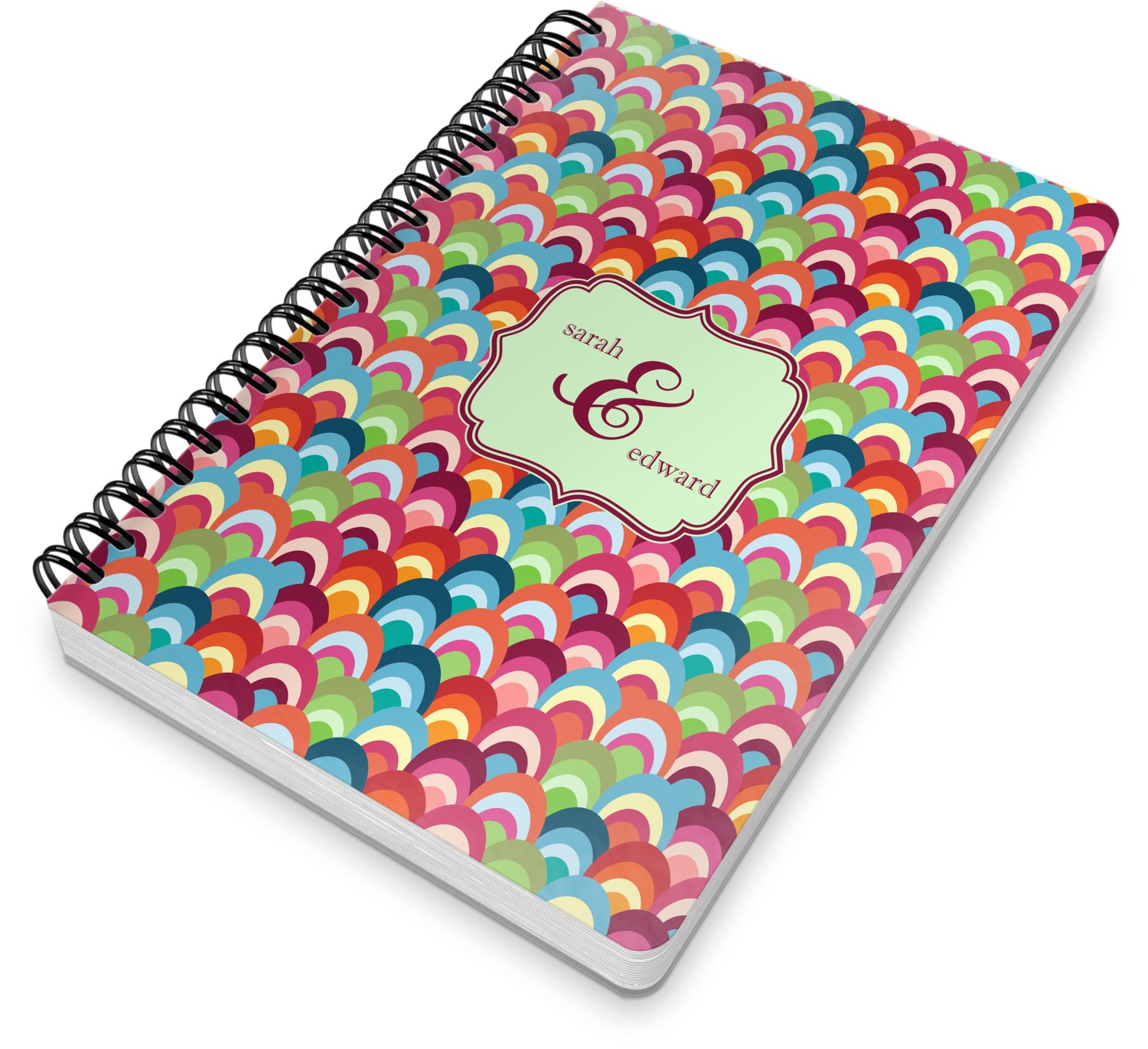 This spiral notebook includes 75 sheets of thick, ruled paper. The front and back of this custom notebook is made of a robust, laminate, plastic covering. We print your personalization on these two panels, underneath a glossy finish, which emphasizes the colors of your design. The two panels and the sheets of paper are held together by a sturdy, black coil. The paper within your bound notebook is perforated for easy, clean tearing.