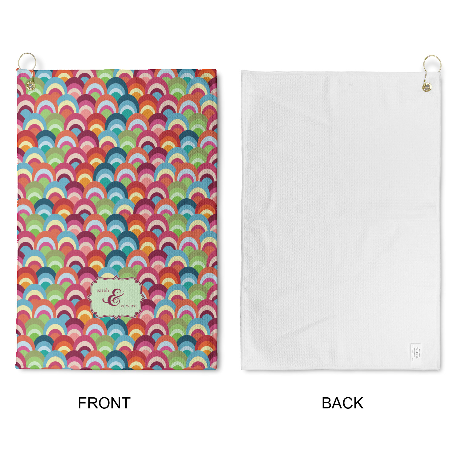 Trying to choose which golf towel is right for you? Our standard golf bag towel (one size - 13" x 18") is a terry loop style towel with a partial print that is great for normal, everyday use. If you are looking for a poly-cotton blend full print towel look at our standard full print golf towel - available in 2 sizes - small (11" x 18") and large (15" x 25"). If you prefer the look and feel of a soft microfiber towel our microfiber golf towels are a great option and allow you to polish your club and ball surfaces to a nice sheen. The microfiber golf towels are also available in 2 sizes - small (11" x 18") and large (15" x 25"). Lastly the waffle weave towel (available in a single size - 16" x 24") is a fantastic option to give you some texture on your towel to allow for more scrubbing and cleaning when playing in rougher, wetter environments. All of these options are able to be washed with bleach to get them clean and will retain their bright colors.