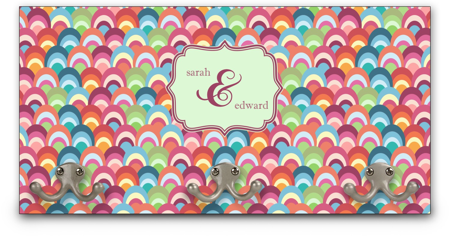 This coat rack is the perfect way to add some personality to your wall or entryway. The board is made of a strong maple that is approximately 16" x 8". The three 2-prong hooks are a sturdy metal that have three screws attaching them to the board. Your design is printed right onto the front of the board while the back and sides are a simple black.