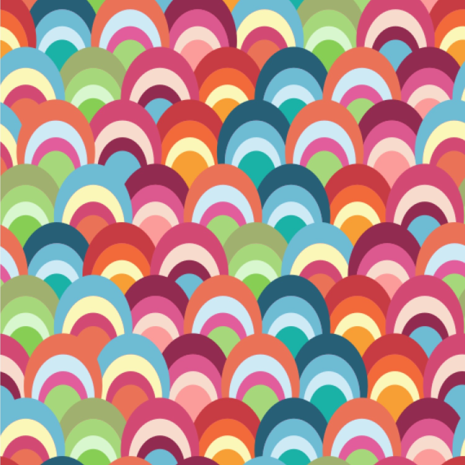 Modern meets retro! This modern fish scale design has a wonderful multicolored retro look to it. The decorating choices are endless with all these gorgeous colors.