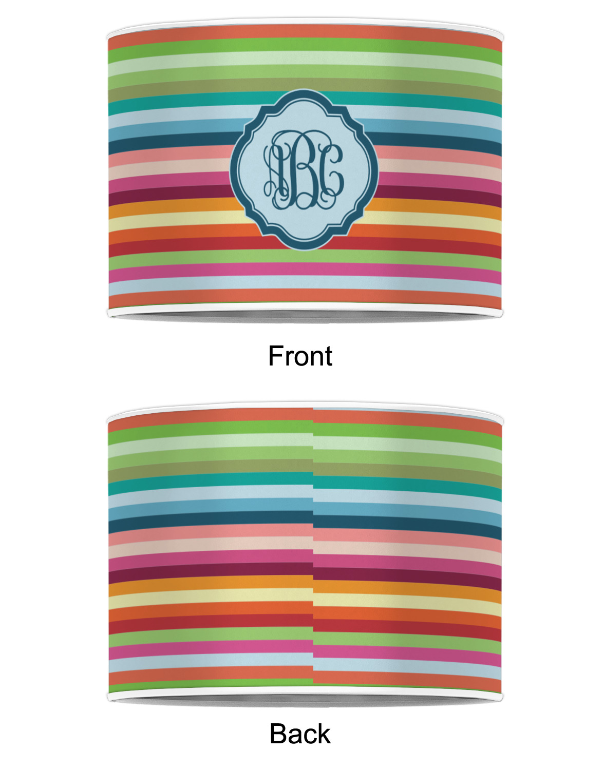 Our customized lamp shades also come in 3 different sizes: 8", 12" and 16", measuring at 8" in diameter by 6" tall, 12" in diameter by 8" tall, and 16" in diameter by 10" tall, respectively.