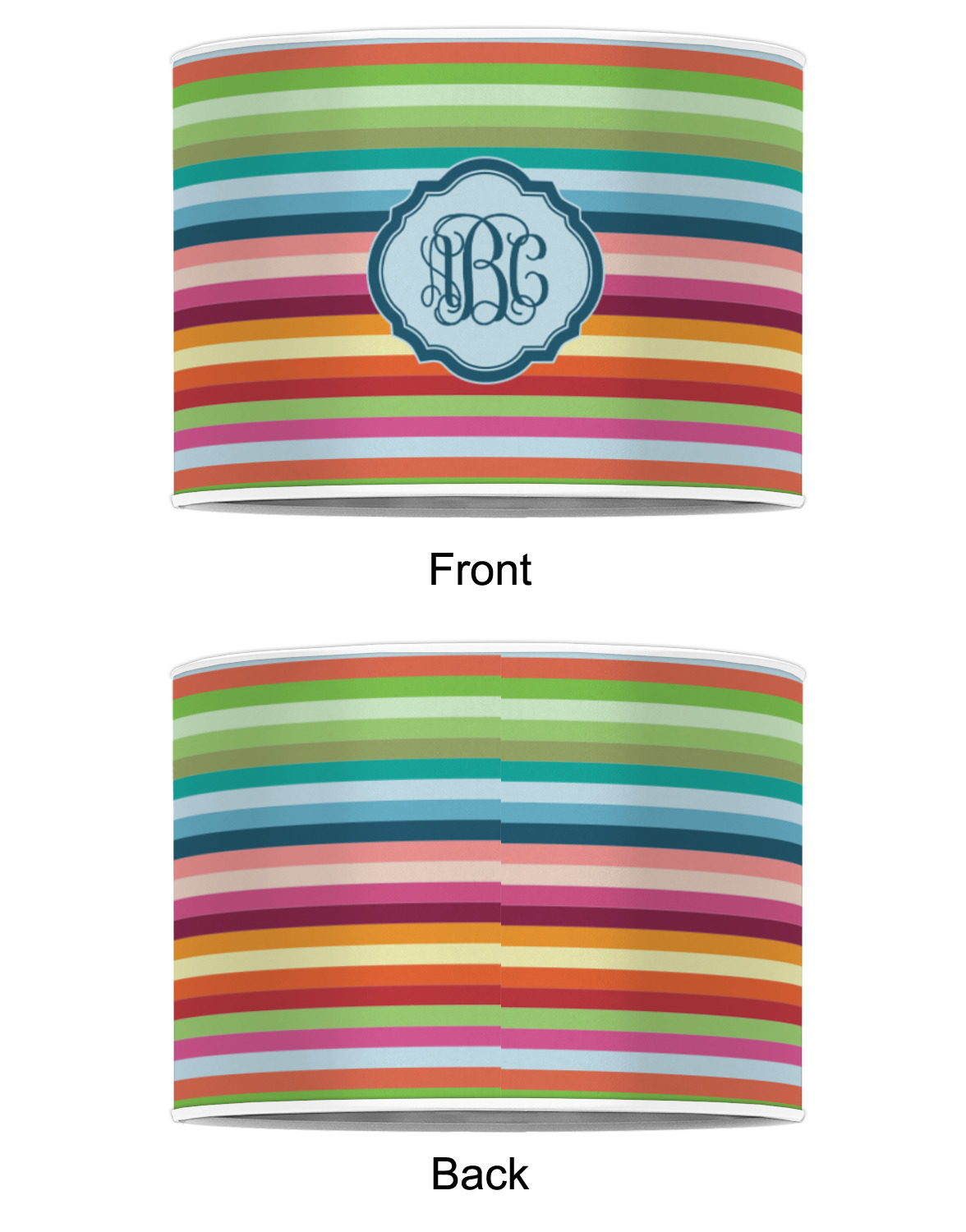 Our customized lamp shades also come in 3 different sizes: 8", 12" and 16", measuring at 8" in diameter by 6" tall, 12" in diameter by 8" tall, and 16" in diameter by 10" tall, respectively.