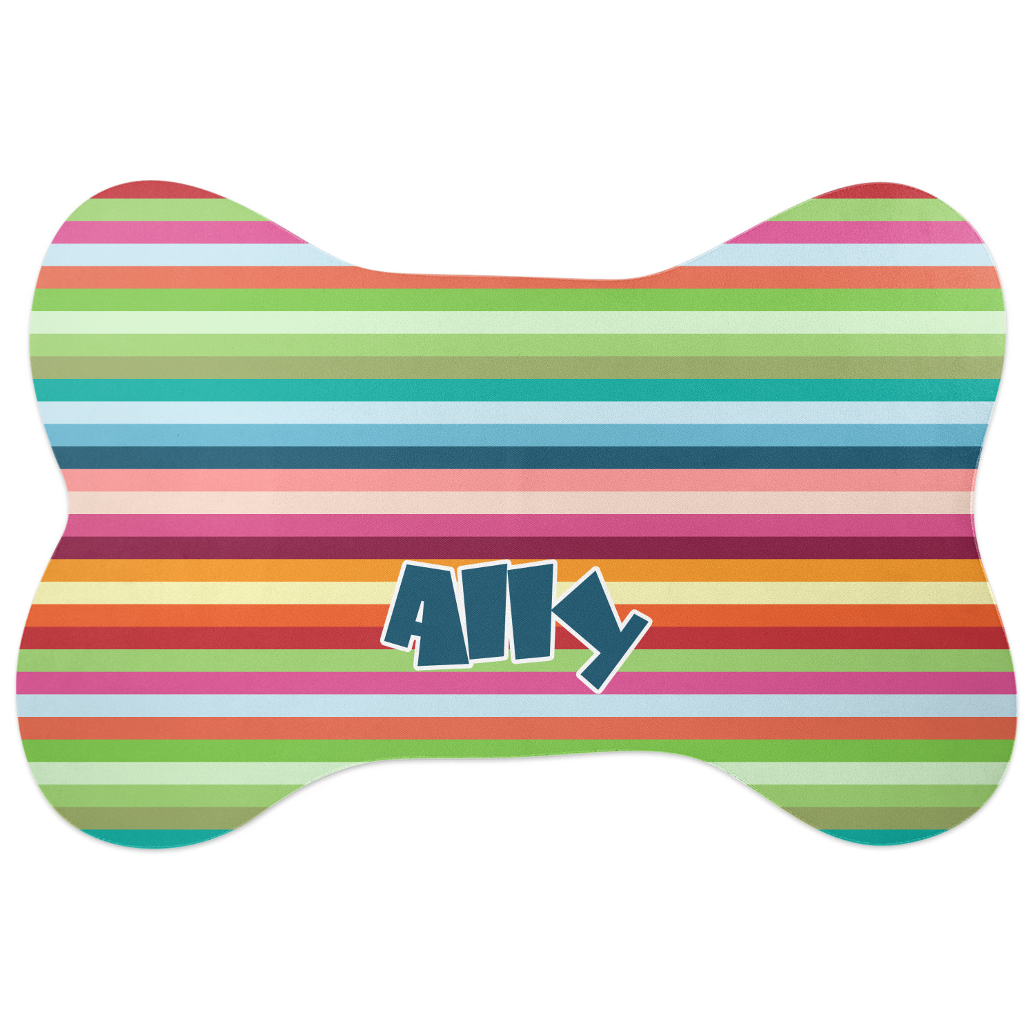 The bone-shaped dog bowl mat is the perfect way to add a touch of personality to your dog's eating area! Dogs make inevitable messes, especially when they eat and drink. Save the integrity of your floors and the time spent cleaning them by purchasing a personalized mat that catches spills!