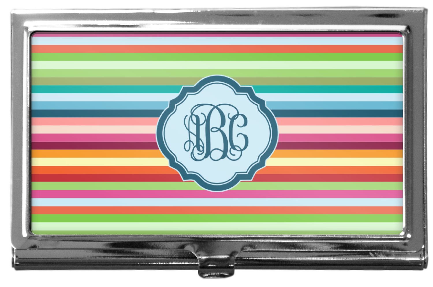 Our personalized business card holders are built from a robust, stainless steel and shaped into a sleek rectangle. At 3.75" x 2.5", and 0.25" thick, this nifty accessory holds up to 12 to 15 business cards, depending on the thickness of the cards themselves. Regardless, the skinny style makes it the perfect fit for your purse or pocket. The lid of your custom business card holder features a protruding tab to open and close your holder with a snap. To protect the mint condition of your cards, the interior of this metal business card holder is lined with a soft, felt fabric. We print your personalized design across the face of the lid.