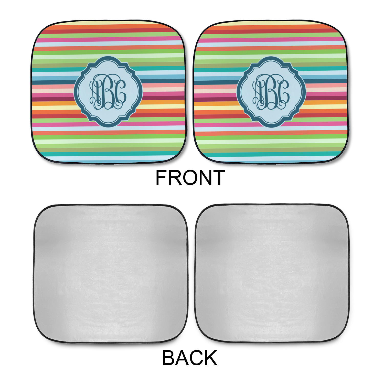 Sold as a pair and with your design printed on the front and the back having a reflective silver material these are sure to reduce the temperature of the inside of your car and keep UV rays from prematurely wearing your dash and interior panels. You have the option of both being the same design or design them separately for a unique look that will have all of your friends asking where you got your car windshield sun shades.