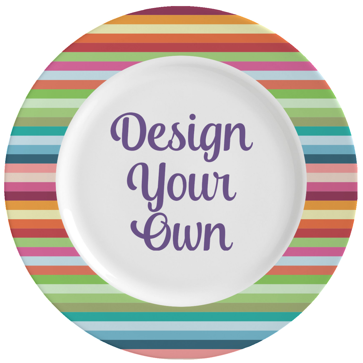 With this custom dinner plate, your have the option of personalizing the rim with an attractive pattern, and then displaying a name, graphic, or text in the center of the plate, against a white background. The exterior of this plate is also the same classic, white color. A glaze coats your plate, making your vividly colored design seem even more vibrant.