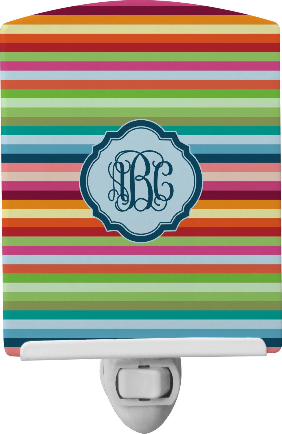 This baby night light is made of durable, ceramic plate that displays your customized design beneath a glossy finish. When this light is turned on, your personalization glows in the dark and offers a bit of light to any room or hallway. The plate also rotates easily. This plug-in night light has a white base with a convenient on and off switch. Additionally, the rotating plug allows you to plug them into US sockets horizontally or vertically. If your child outgrows the design years into the future, you can easily unscrew the plate and use it as a plain nightlight. With your purchase of this outlet night light, we include a 7-watt bulb.