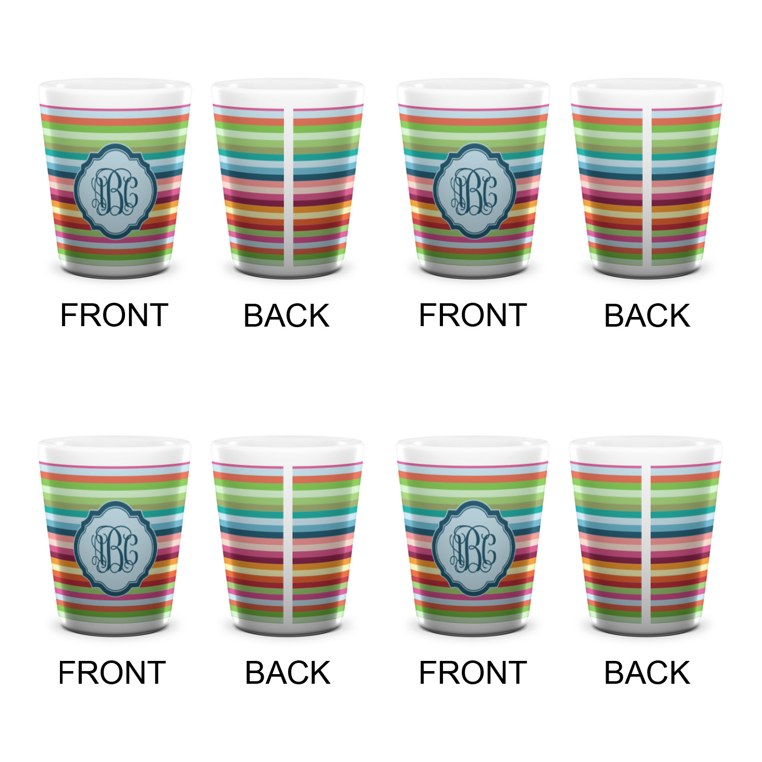 Made from ceramic these shot glasses are printed in full color with the design of your choice. These are a standard 1.5oz size and stand 2.25" tall. Available in a full white ceramic or a two-tone with a black color inside the shot glass. Buy a single or a set of 4, all of which can be designed separately to get you just what you want and need.