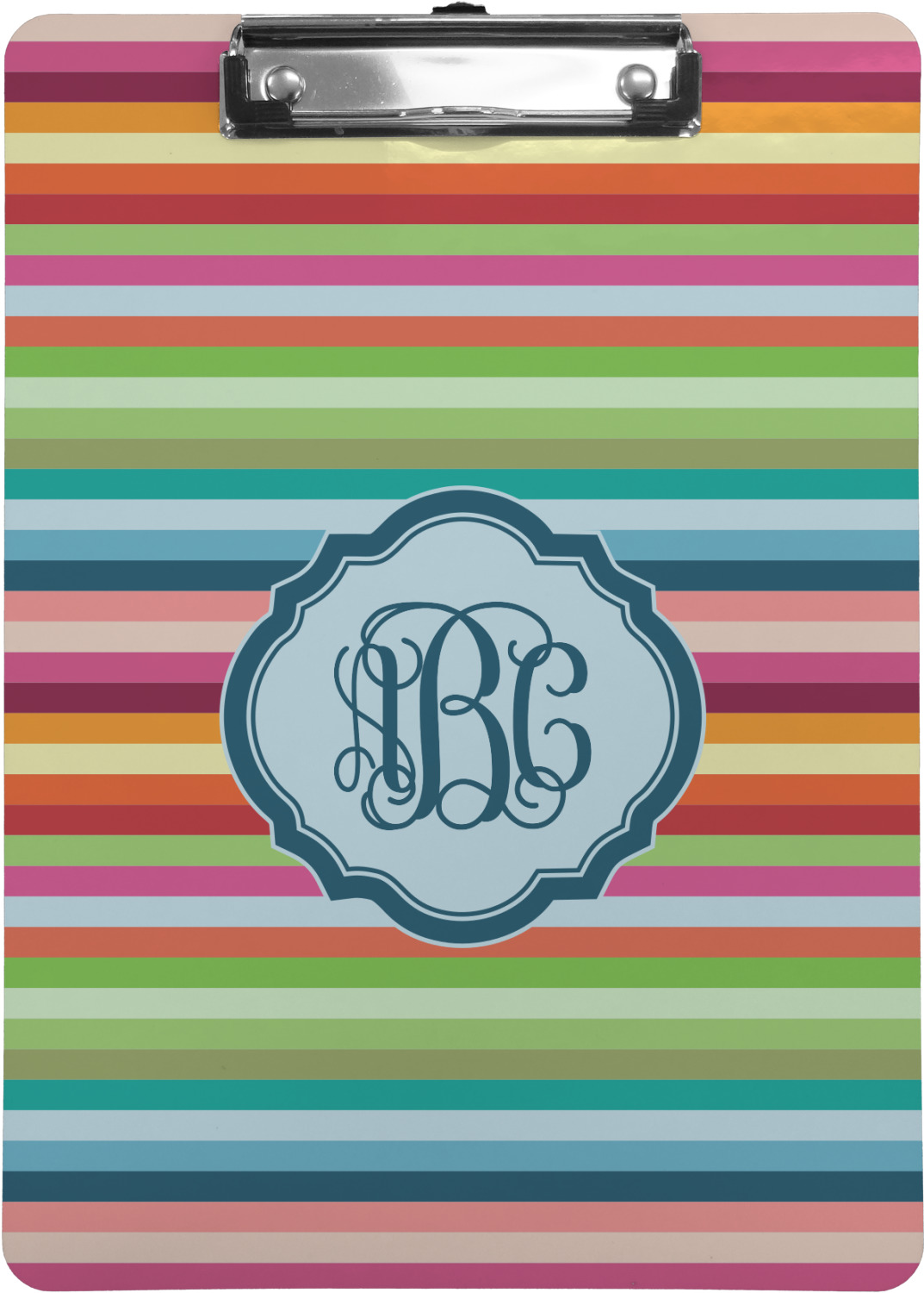 These custom clipboards are made from a strong hardboard and are coated with a glossy finish that accentuates the colors of your design. Alongside a retractable hook at its top, these decorative clipboards also feature sturdy clips to secure several sheets of paper. We sell these clipboards in two separate sizes. Our letter size measures at 12.5" L x 9" W, while our legal clipboard is approximately 15.5" L x 9" W. On both models, your personalization is printed on both sides of this clipboard and can be customized individually.