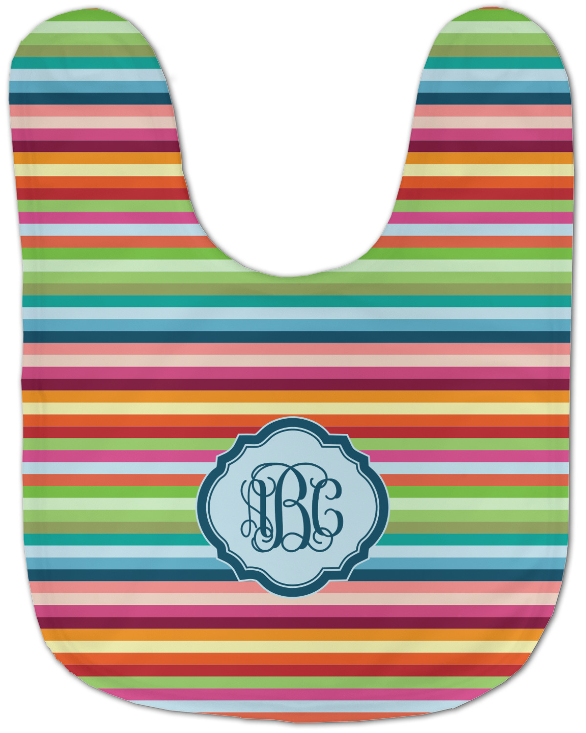 Made of soft polyester, each customizable bib hugs comfortably around the neck to catch every drip and drool. Each bib design is printed with baby-safe ink and finished with a secure stitch pattern and velcro clasp. We carry two customizable bib styles -Microfiber Velour and Jersey Knit.