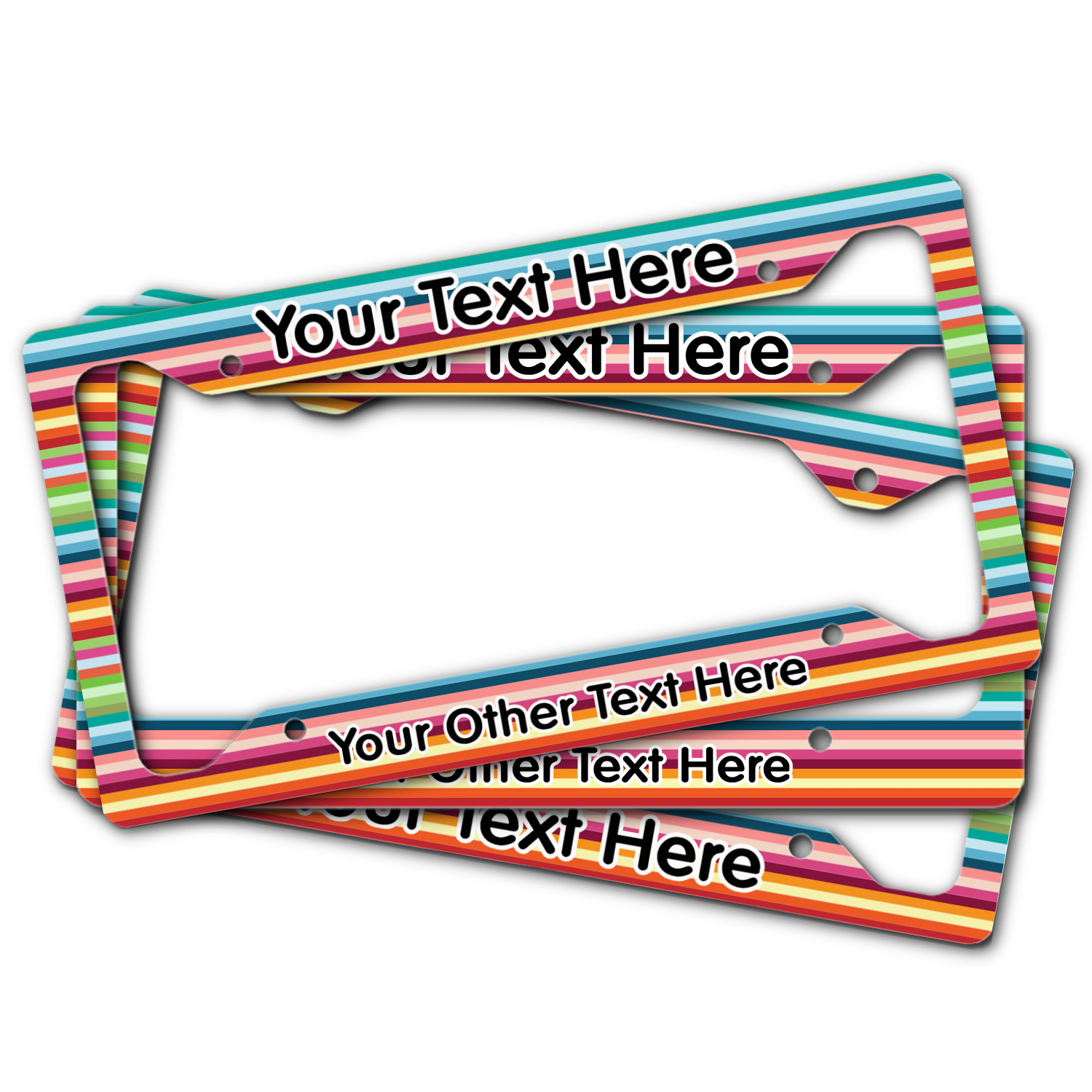 Each customizable license plate frame is made from a fine, yet sturdy aluminum material that measures approximately 6.5 x 12.15 inches, accommodating most standard license plates. The thickness allows the license plate frame to adhere completely to your license plate for a seamless look. We carry 3 styles of license plate frames to customize - Style A has texts on top and bottom, Style B offers texts on top and bottom as well as a full fill bottom border, and Style C offers text at the bottom only. The personalized license plate frame comes with four mounting holes for easy installation! We print each custom design across the frame with a glossy finish.