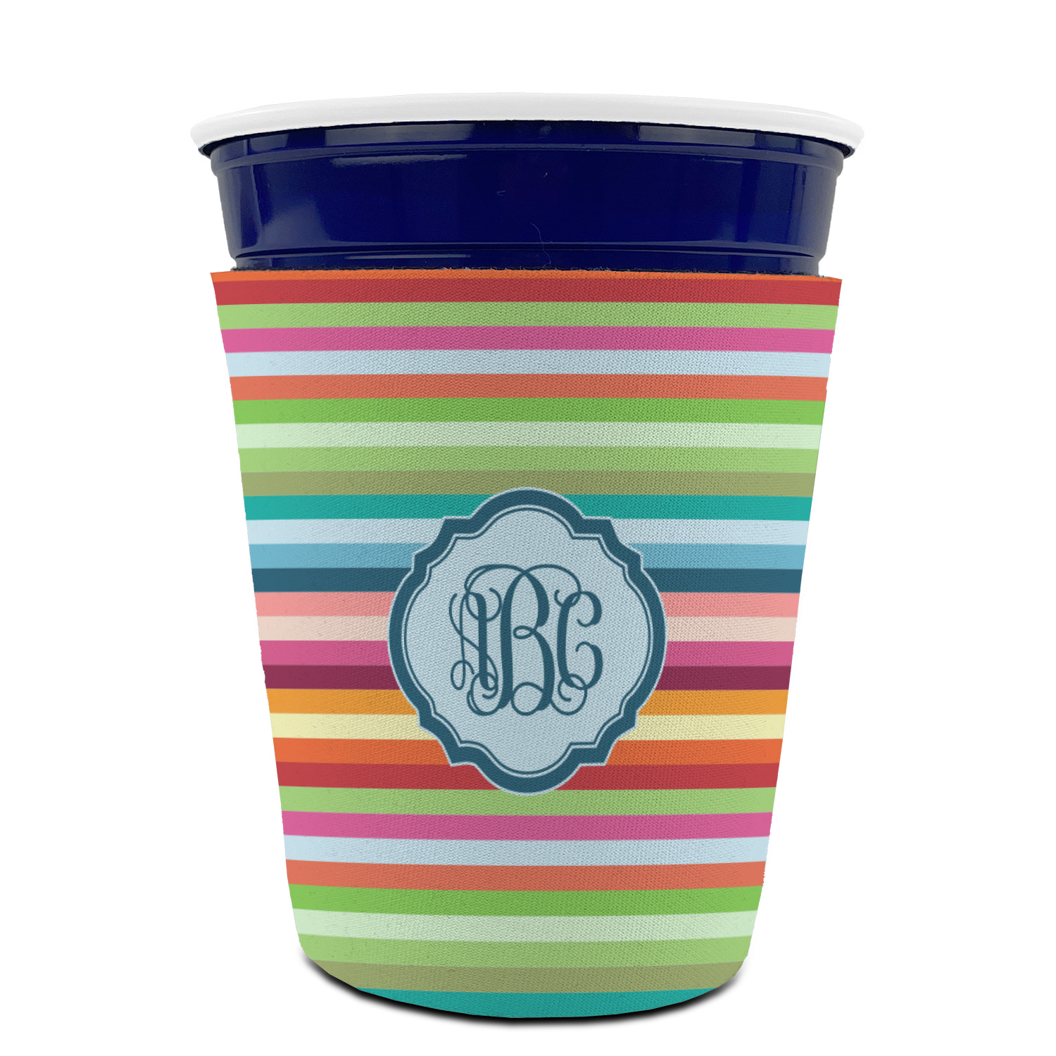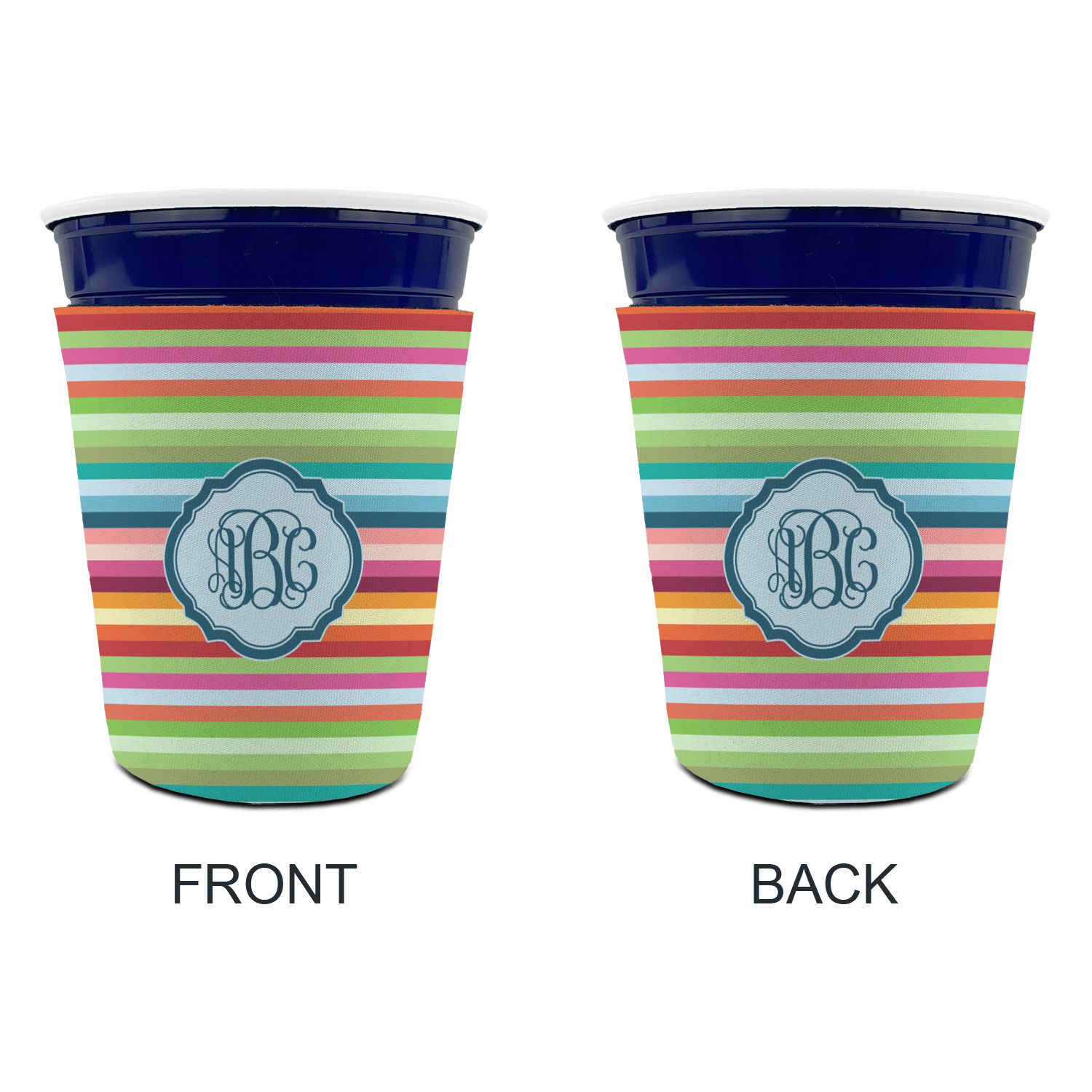 Made from neoprene with a polyester outer fabric and sewn seams, these premium quality party cup sleeves are very durable and will hold up to heavy use. They are available in 2 styles - with a bottom or just a sleeve to go around the outside of the tapered cup. The sleeve covers are about 4" tall and cover about 90% of the classic 16 oz. Solo cup.