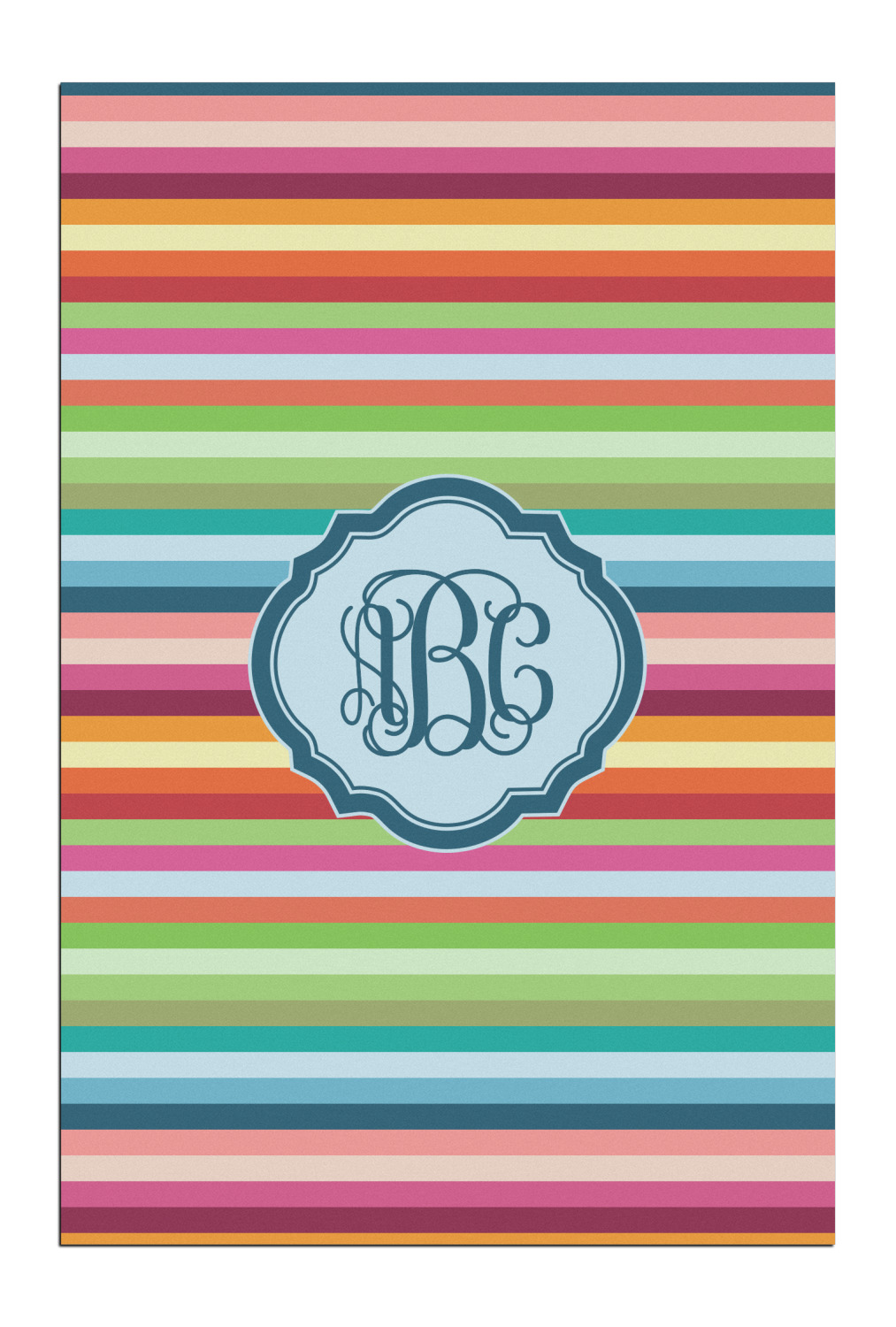 Modern meets retro! This modern horizontal stripe has a wonderful multicolored retro look to it. The decorating choices are endless with all these gorgeous colors.
