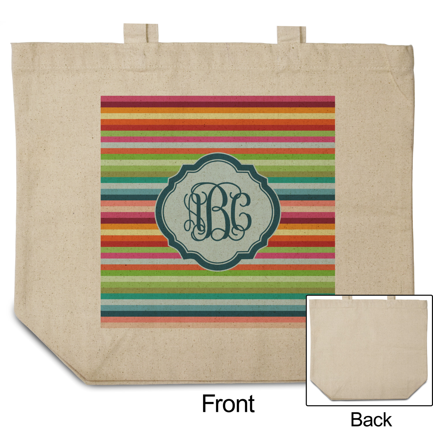 These cotton totes are washable and easy to care for, and they can be folded flat for storage. Your artwork, logo, or photo is printed in full color directly on the cotton tote in the front.