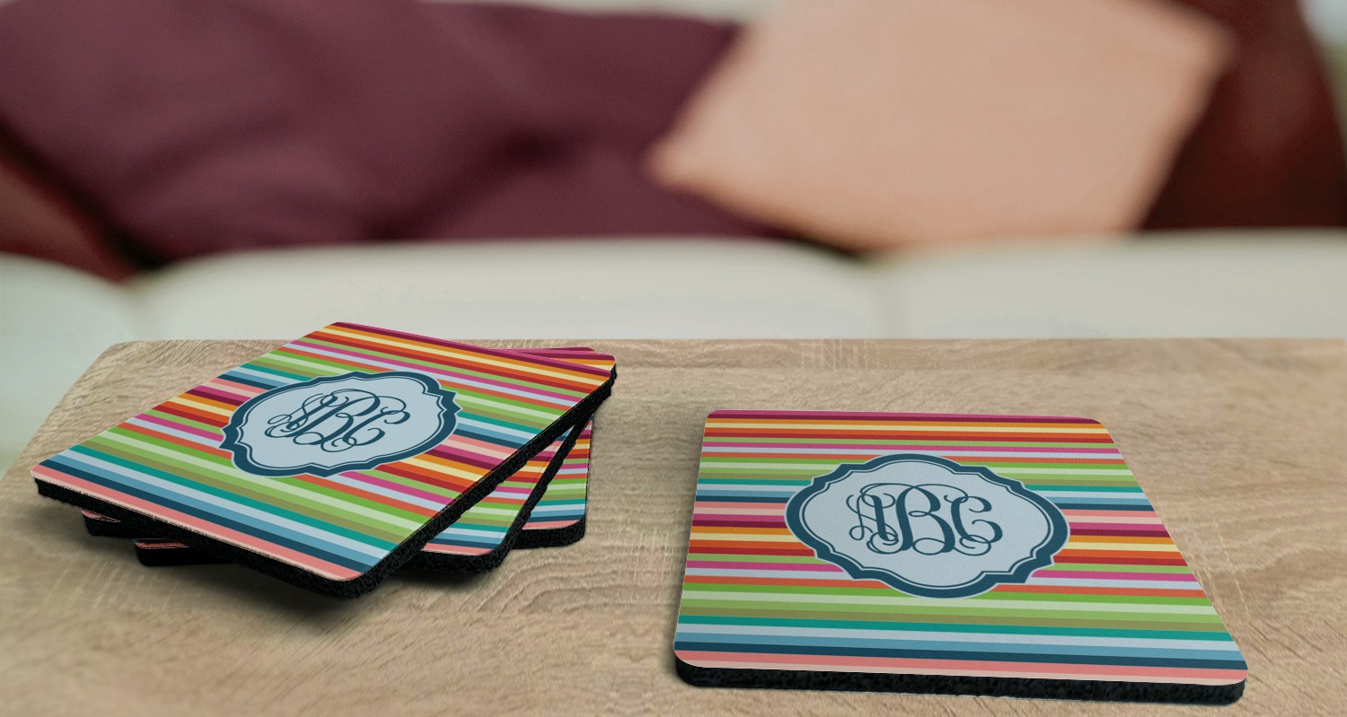 Replace your boring, run-of-the-mill coasters with a set of 4 personalized coasters! When personalized, these coasters will protect your beloved surfaces while adding to your home's decor! Thanks to your coasters bright colors and unique design, your guests will be eager to use them!