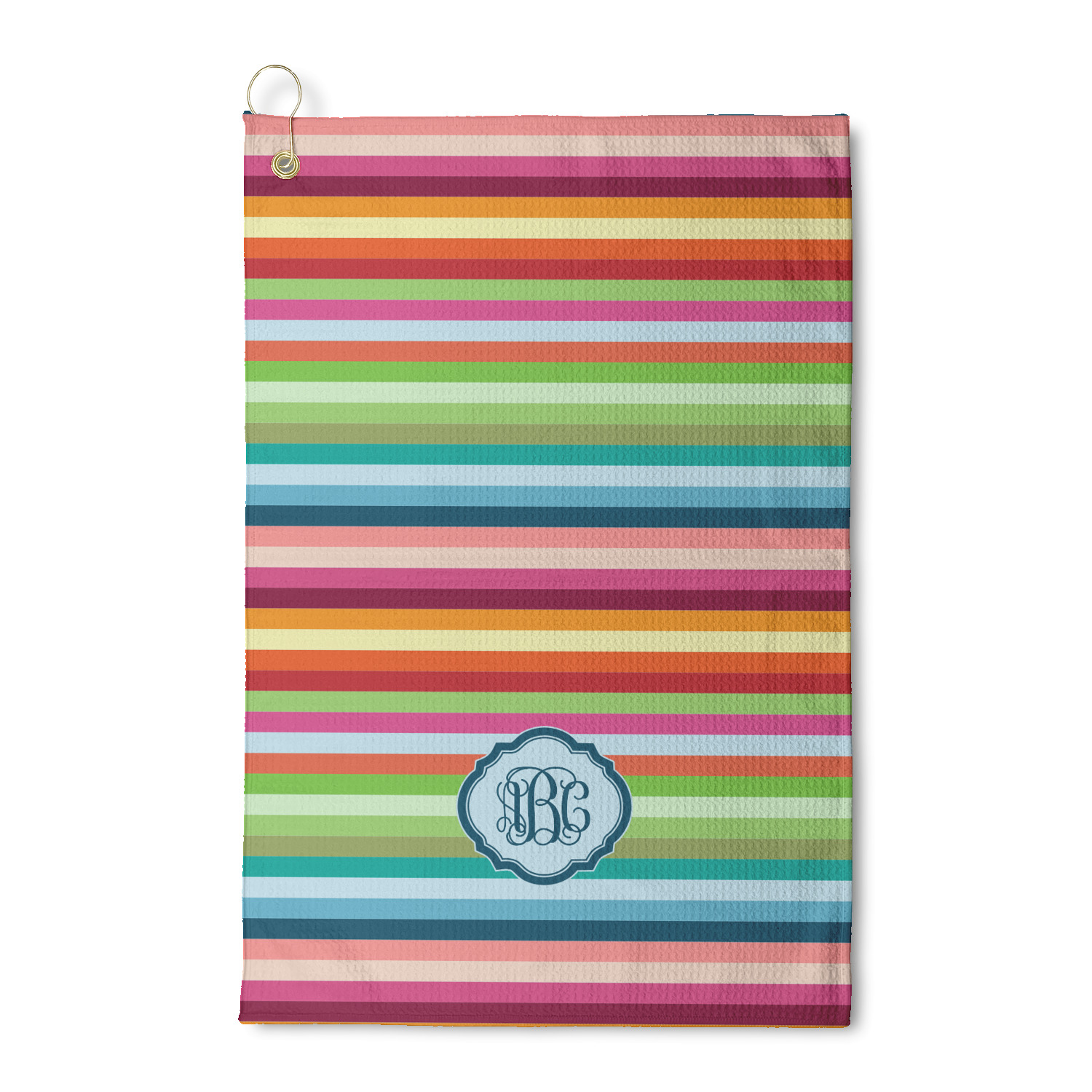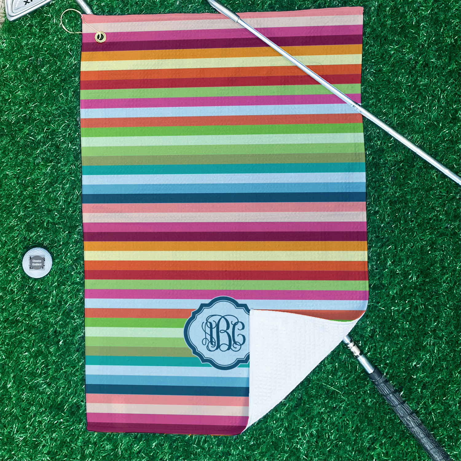 Trying to choose which golf towel is right for you? Our standard golf bag towel (one size - 13" x 18") is a terry loop style towel with a partial print that is great for normal, everyday use. If you are looking for a poly-cotton blend full print towel look at our standard full print golf towel - available in 2 sizes - small (11" x 18") and large (15" x 25"). If you prefer the look and feel of a soft microfiber towel our microfiber golf towels are a great option and allow you to polish your club and ball surfaces to a nice sheen. The microfiber golf towels are also available in 2 sizes - small (11" x 18") and large (15" x 25"). Lastly the waffle weave towel (available in a single size - 16" x 24") is a fantastic option to give you some texture on your towel to allow for more scrubbing and cleaning when playing in rougher, wetter environments. All of these options are able to be washed with bleach to get them clean and will retain their bright colors.