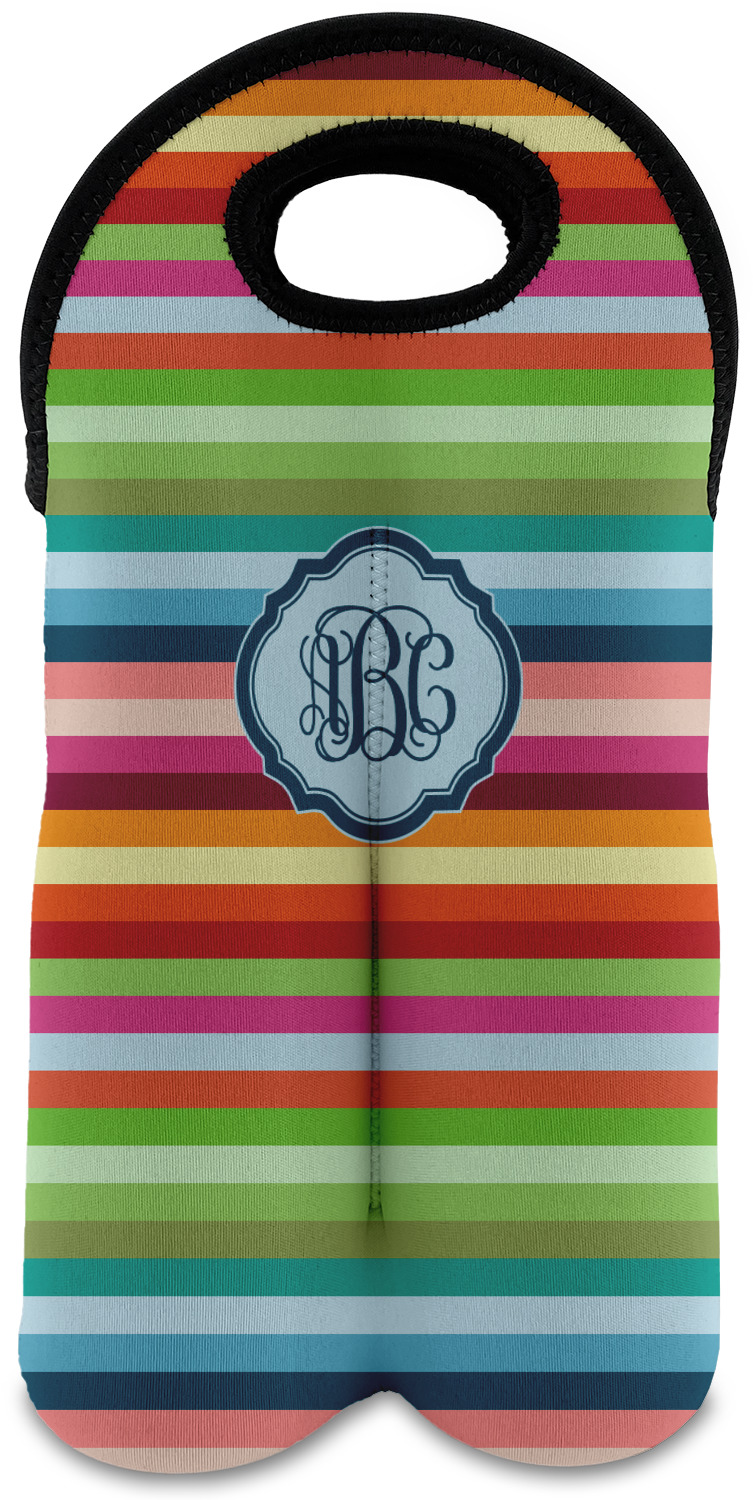 These tote bags are insulated to keep the bottles cold and have a stitched separation down the middle and double handles to keep the two bottles safe and secure during travels.