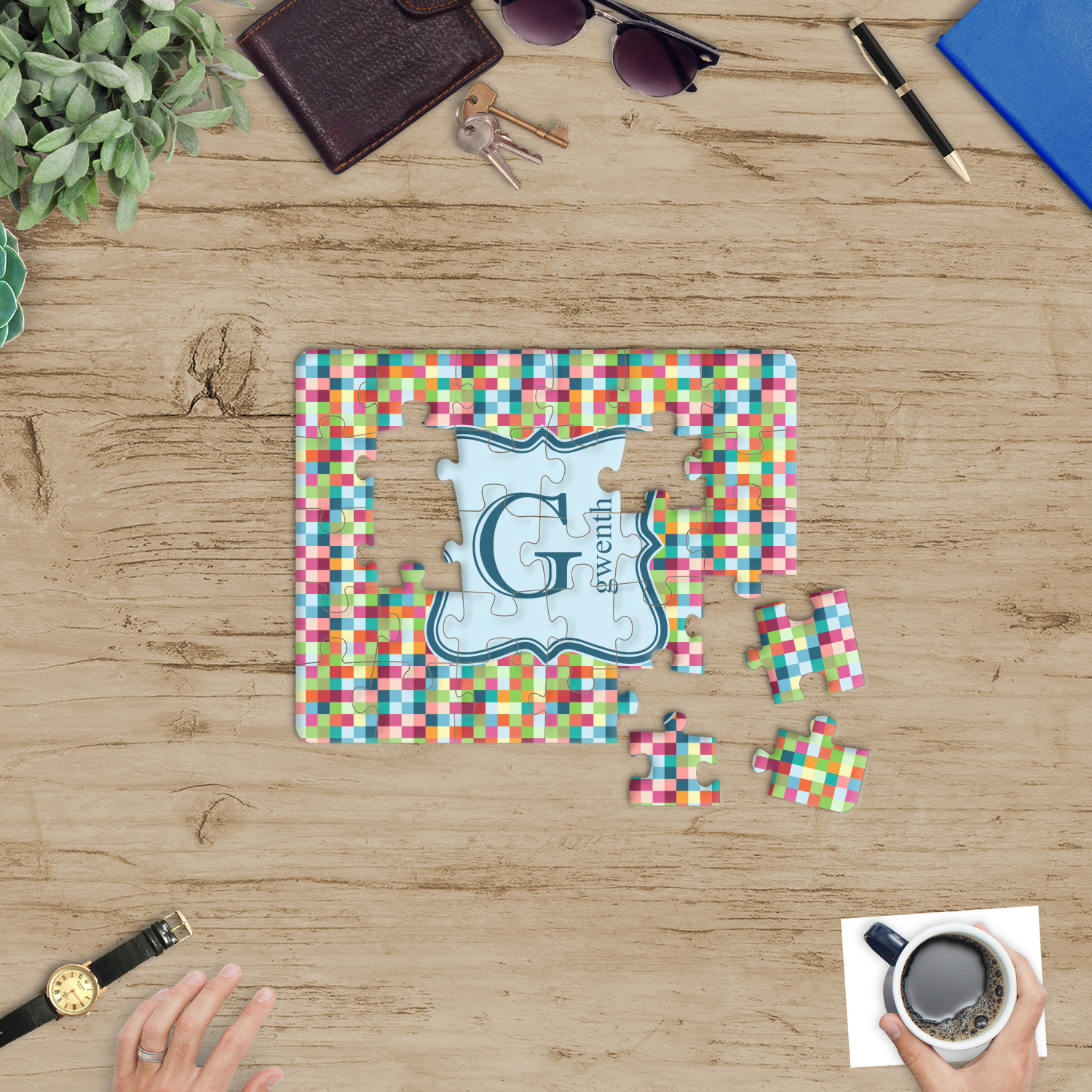 You can also upload your logo or art that you or your kids drew. To create more challenging jigsaw puzzles, you can create a pattern from with your logo or artwork. You can also add other elements such as text or personalization.