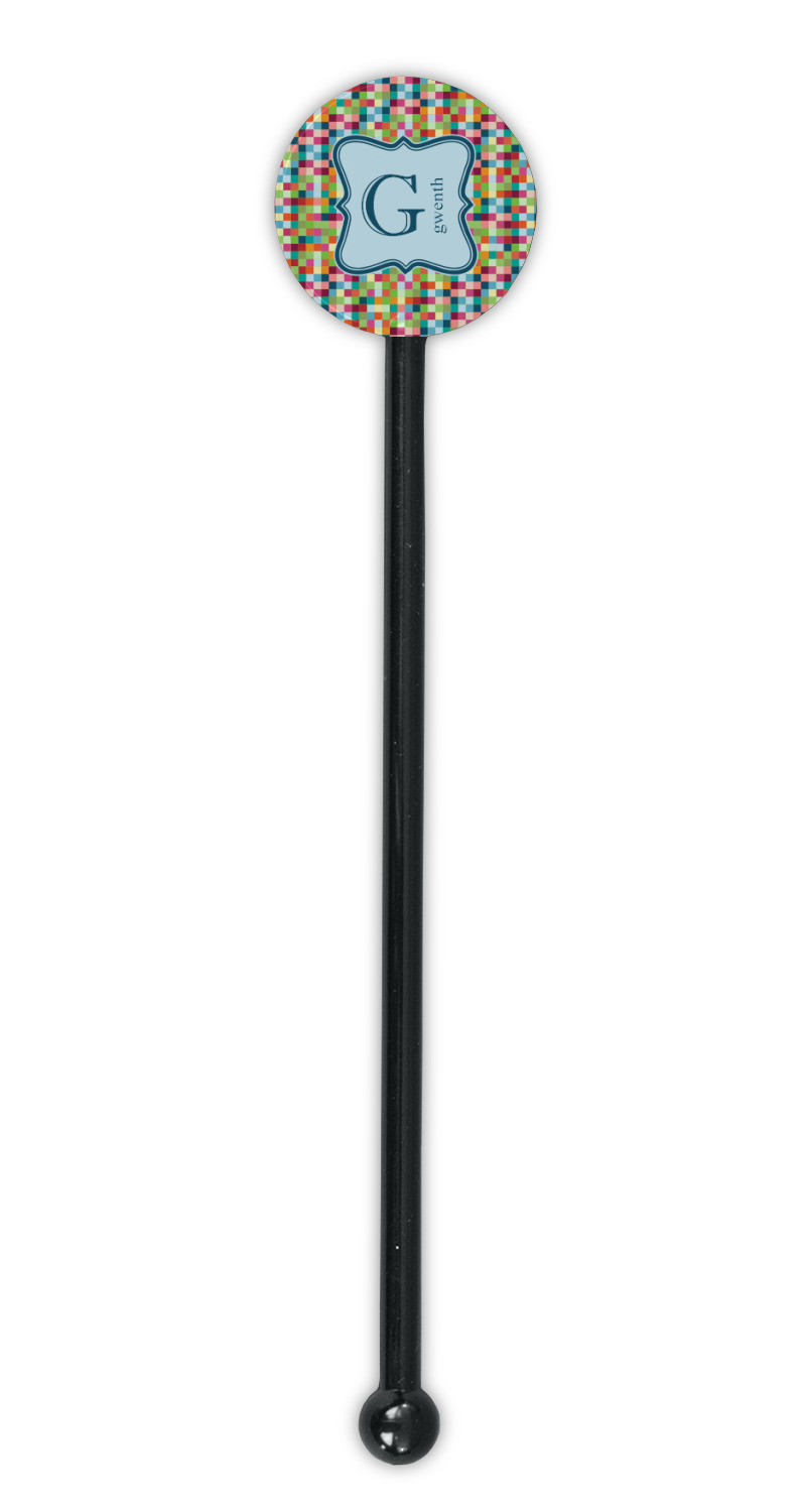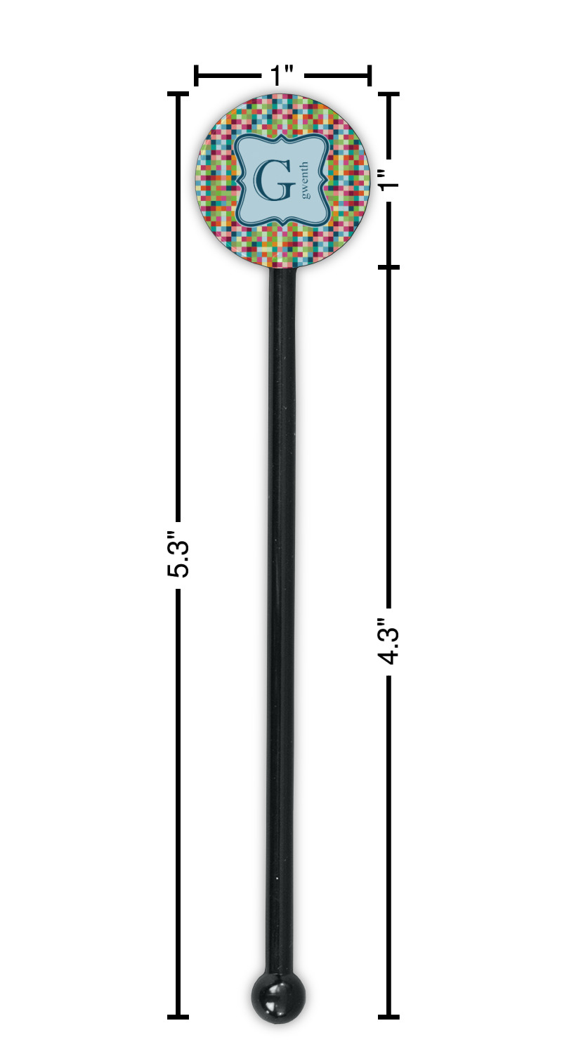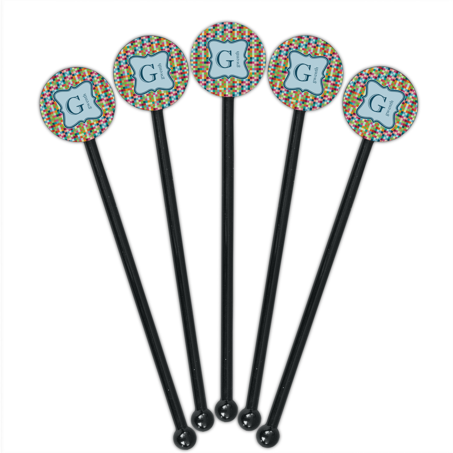 Square Designs for 5.5" Round Plastic Stir Sticks - Black - Single-Sided