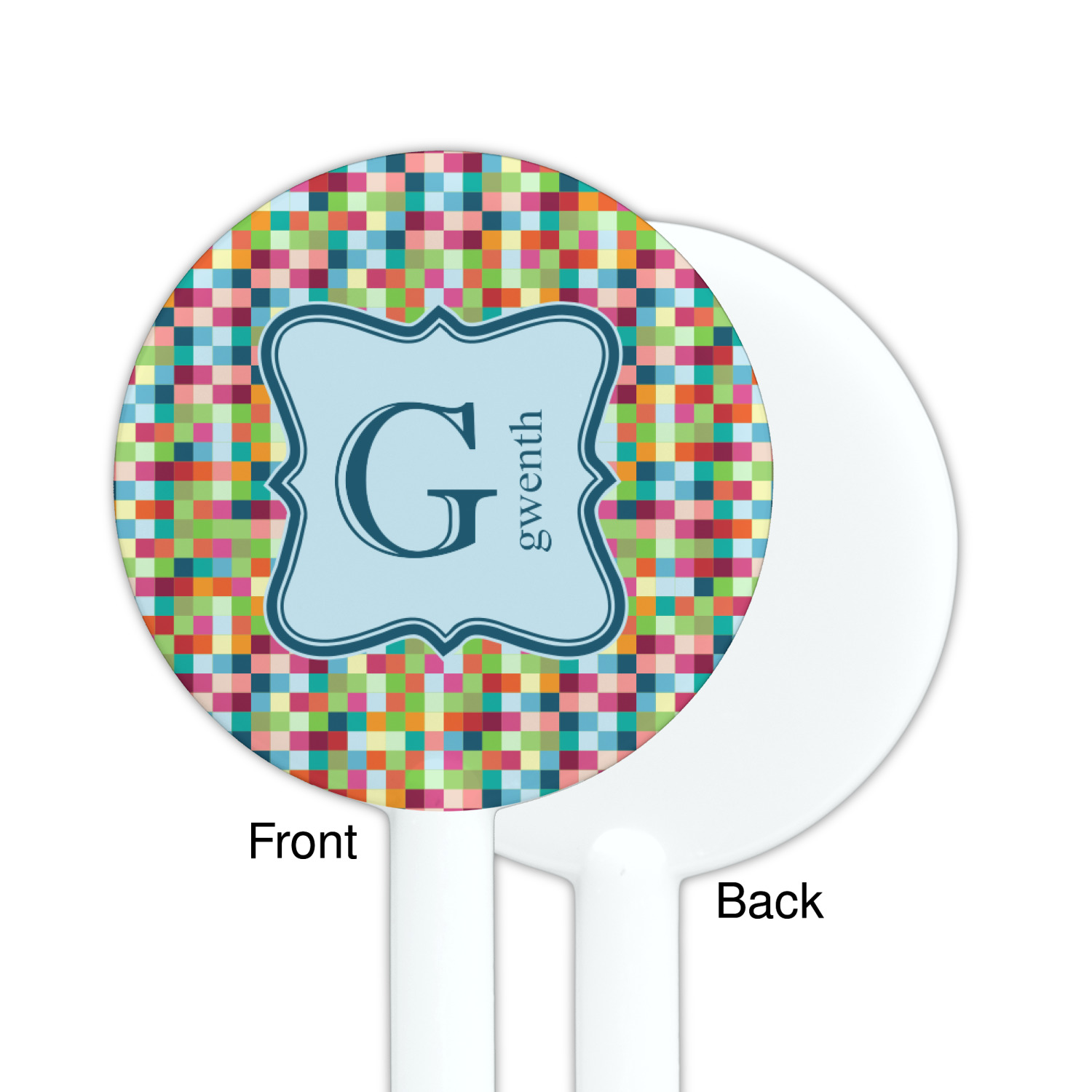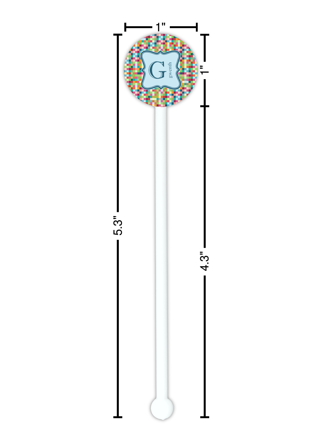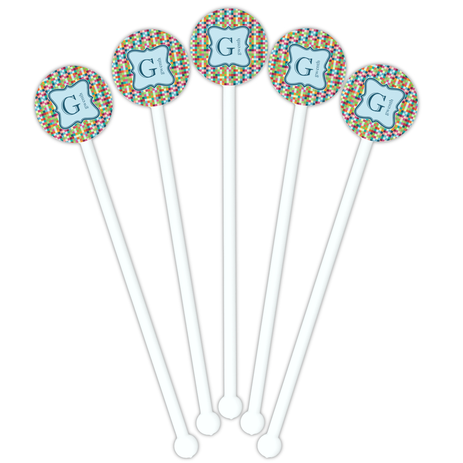 Square Designs for 5.5" Round Plastic Stir Sticks - White - Single-Sided