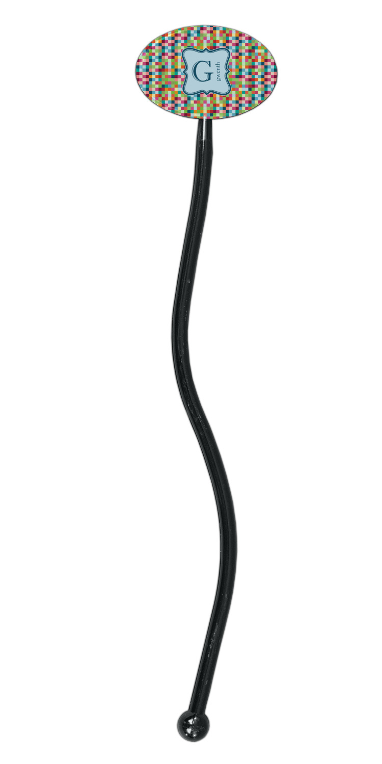 Square Designs for 7" Oval Plastic Stir Sticks - Black - Single-Sided