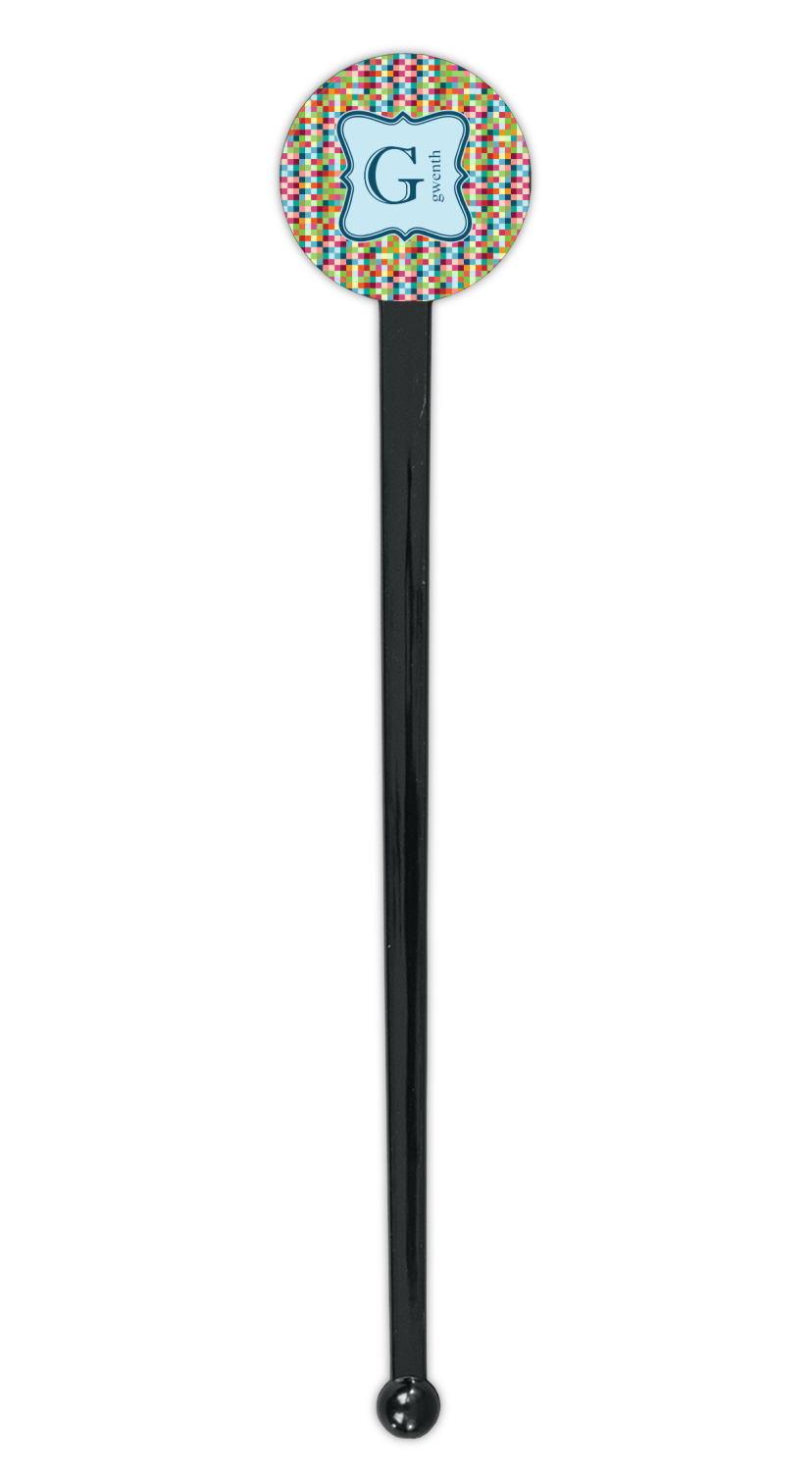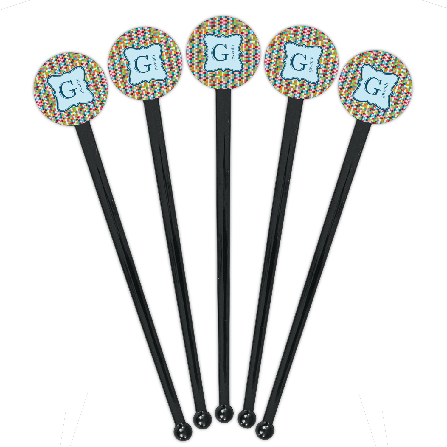 Square Designs for 7" Round Plastic Stir Sticks - Black - Single-Sided