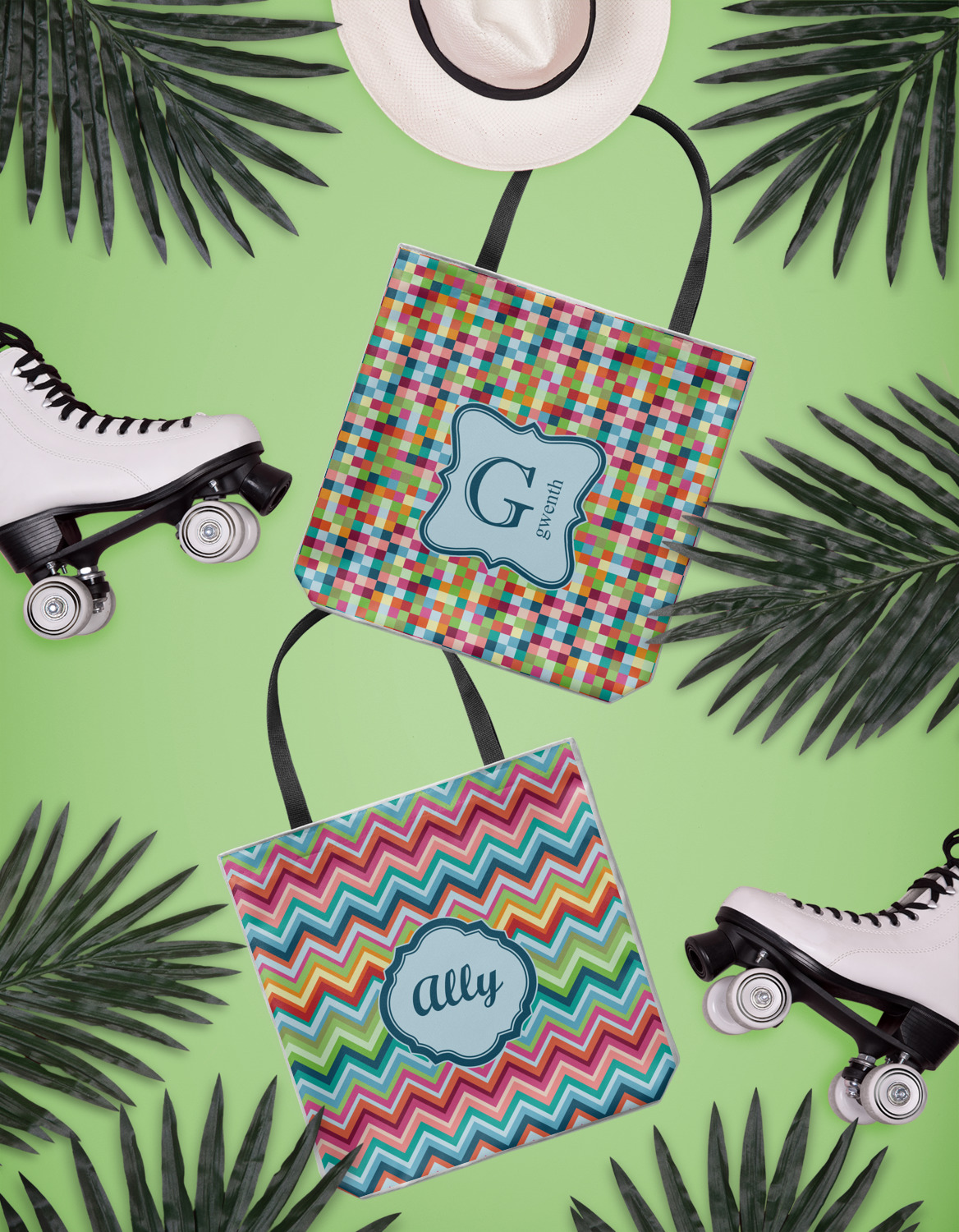 Our all purpose Canvas Totes bags are available in 3 sizes and in hundreds of different designs with many different prints & patterns, which are available in many different colors. You can customize the labels, the ribbons, the personalization styles and of course the fonts.