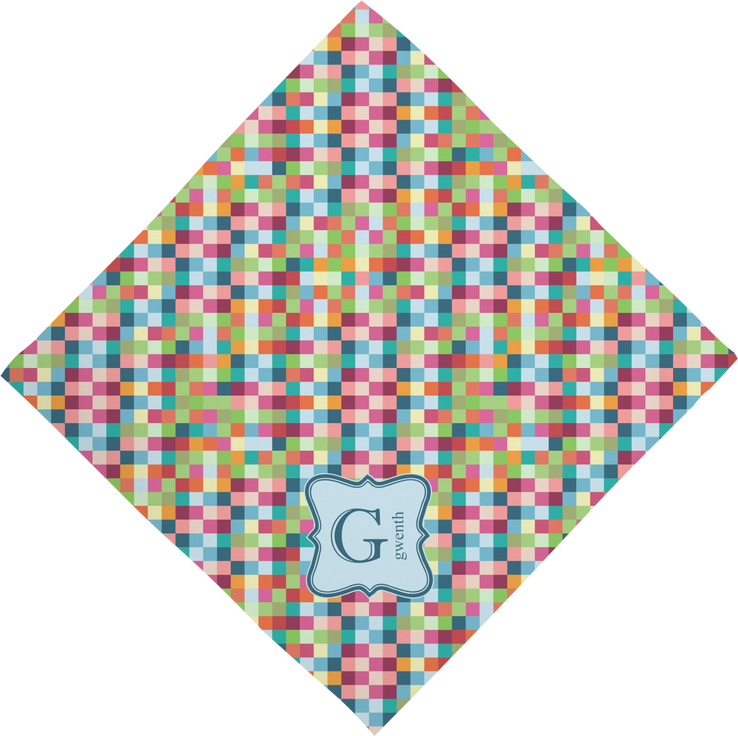 This beautiful pet bandana really is the perfect accessory. It is made from a silky feeling polyester and measures at approximately 23" x 23". Your personalization will be printed on a diagonal, so that you are able to read the personalization when folded into a triangle. This bandana fits best on large dogs, but can be folded smaller if there is no personalized text to fit smaller pets.