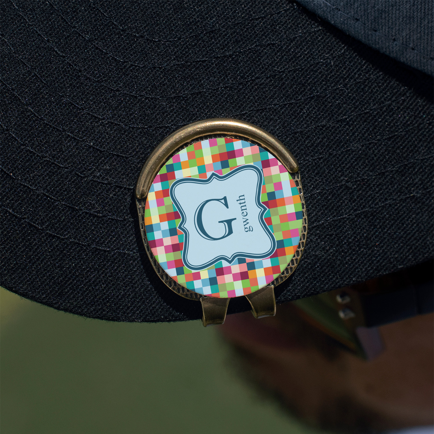 This round shaped little clip is simply 1.25" x 1.5". A clip wraps around to the back of the ball marker holder in order to be able to clip it to the bill of your hat or even your belt. The metal ball marker attaches by a magnet on the clip. Available in stainless steel natural finish or gold finish, you are sure to find one to suit your style. This makes for convenient removal when you need to use it. No more digging in your bag or pockets trying to find it!