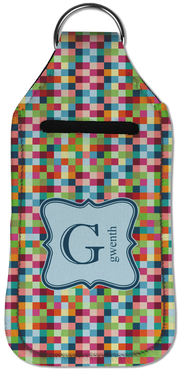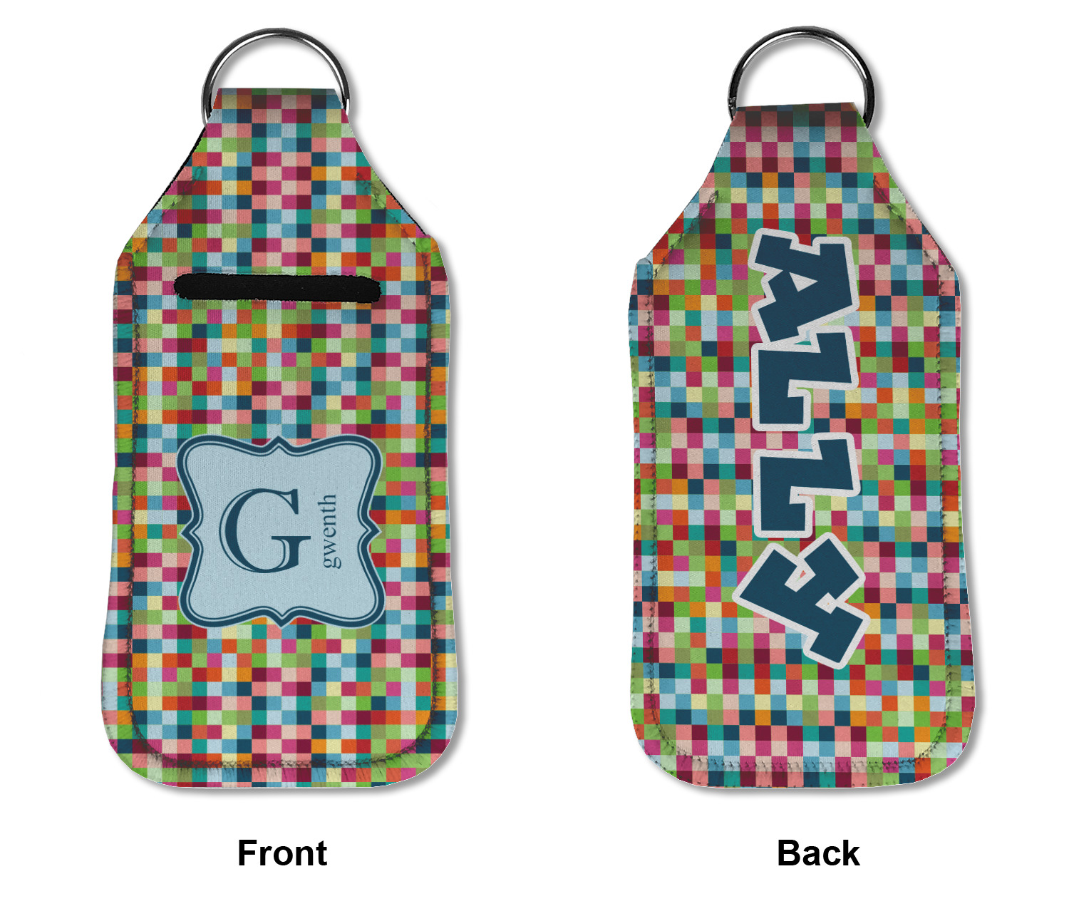 Each hand sanitizer holder comes with its own empty travel-sized, refillable hand sanitizer sure to fit snug in your customized sanitizer case! Our hand sanitizer cases are a durable, yet soft neoprene material sure to last any daily activities or travel agenda. Customize and personalize a hand sanitizer bottle holder with one of our two sizes - small (4.25" x 2.25") or large (5.5" x 2.5"). Each travel sanitizer holder comes with a keyring for attachment on bags, keys, or more!