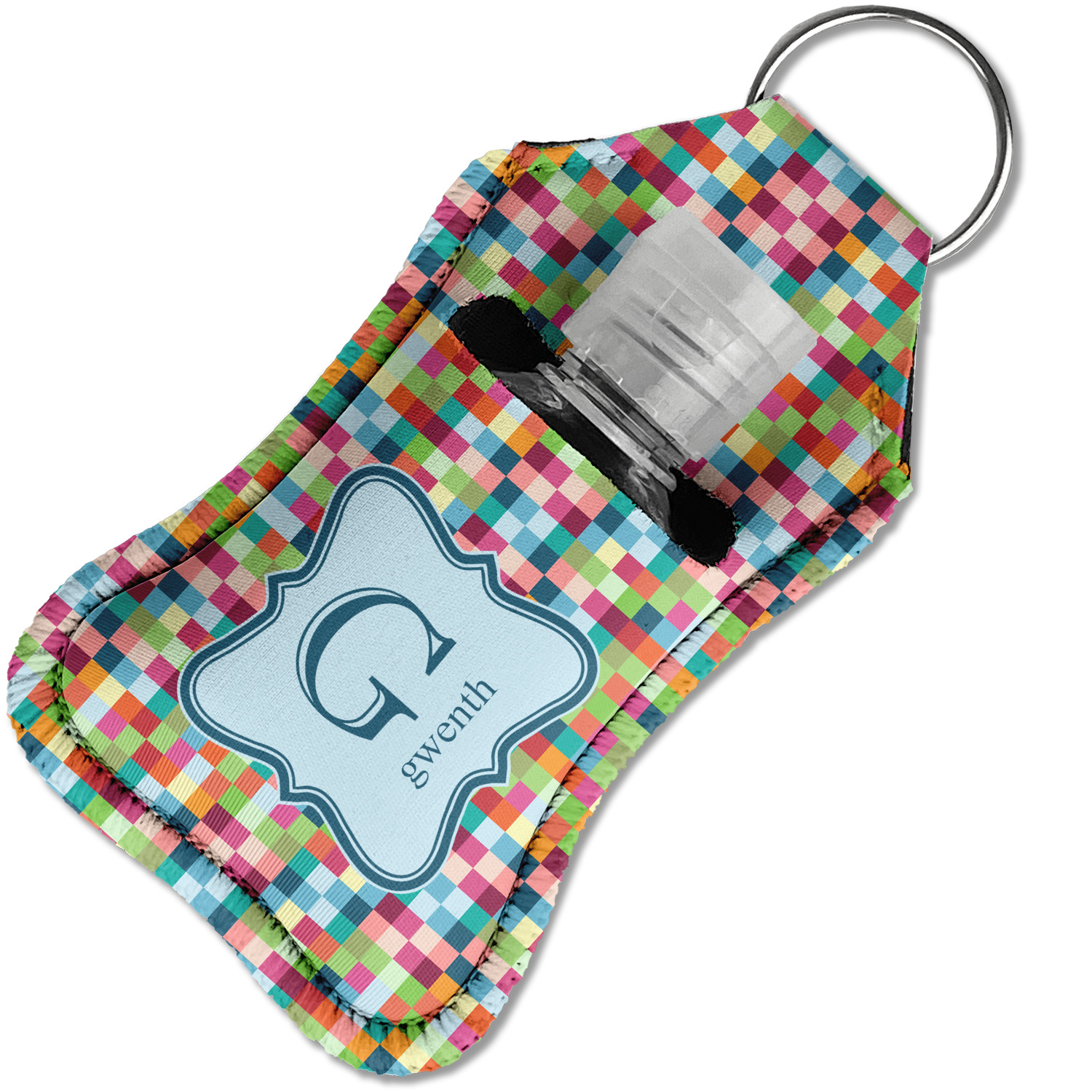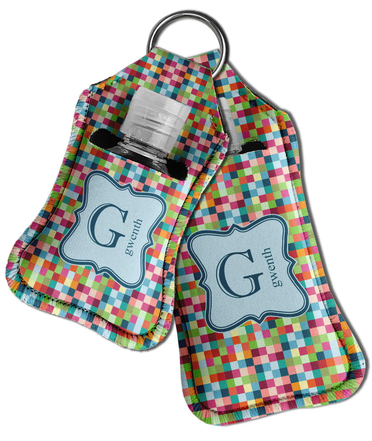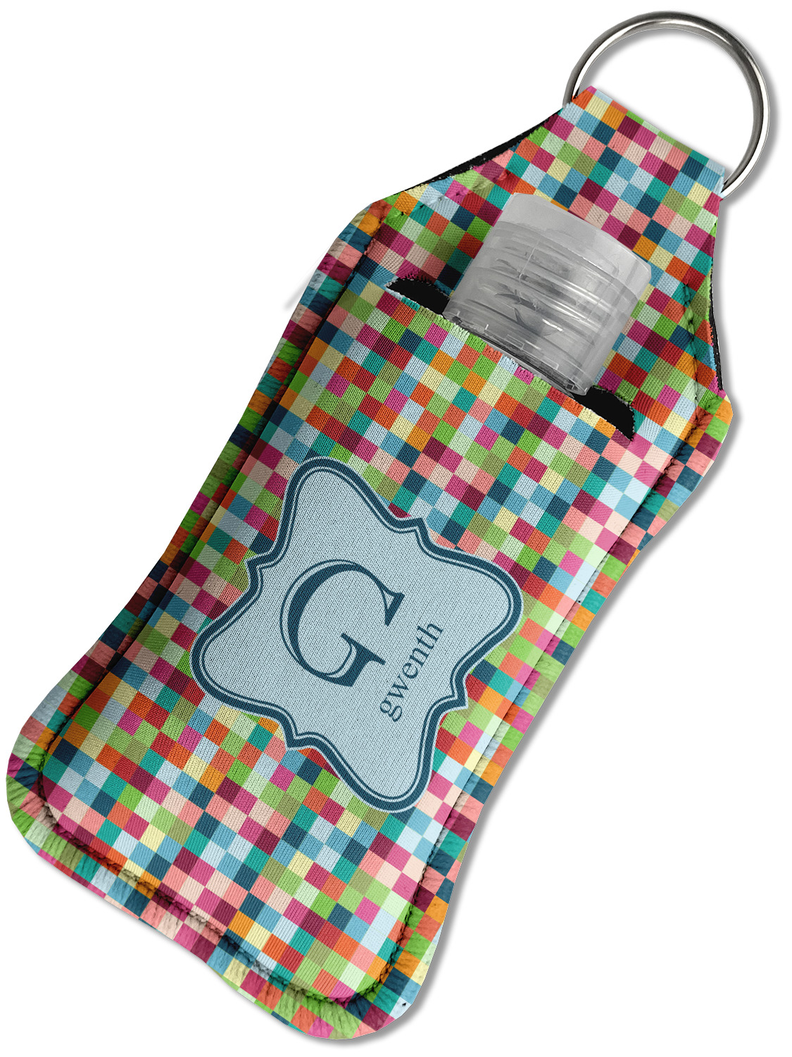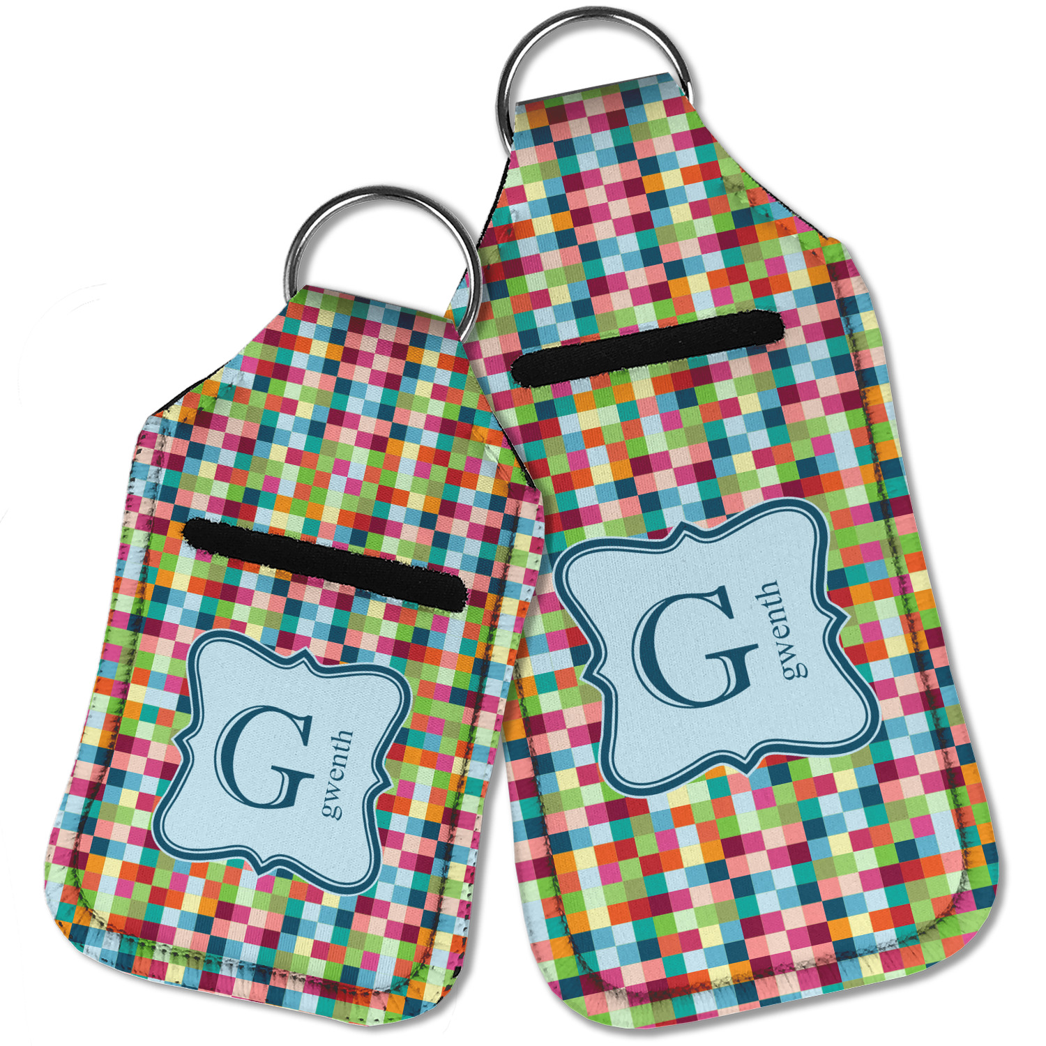 Each hand sanitizer holder comes with its own empty travel-sized, refillable hand sanitizer sure to fit snug in your customized sanitizer case! Our hand sanitizer cases are a durable, yet soft neoprene material sure to last any daily activities or travel agenda. Customize and personalize a hand sanitizer bottle holder with one of our two sizes - small (4.25" x 2.25") or large (5.5" x 2.5"). Each travel sanitizer holder comes with a keyring for attachment on bags, keys, or more!