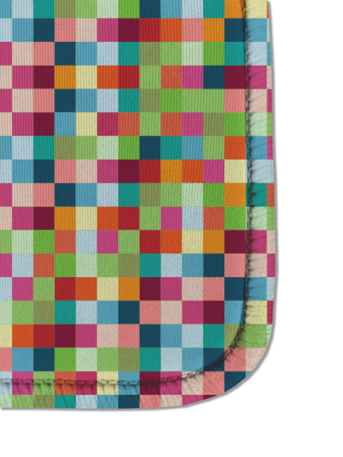 Modern meets retro meet techie! This modern pixelated design has a wonderful multicolored retro look to it. The decorating choices are endless with all these gorgeous colors.