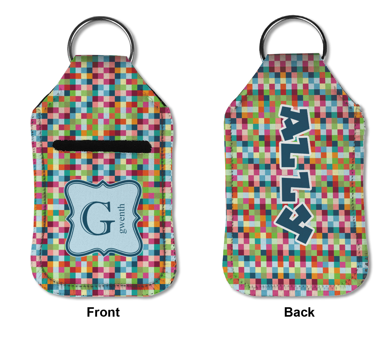 Each hand sanitizer holder comes with its own empty travel-sized, refillable hand sanitizer sure to fit snug in your customized sanitizer case! Our hand sanitizer cases are a durable, yet soft neoprene material sure to last any daily activities or travel agenda. Customize and personalize a hand sanitizer bottle holder with one of our two sizes - small (4.25" x 2.25") or large (5.5" x 2.5"). Each travel sanitizer holder comes with a keyring for attachment on bags, keys, or more!
