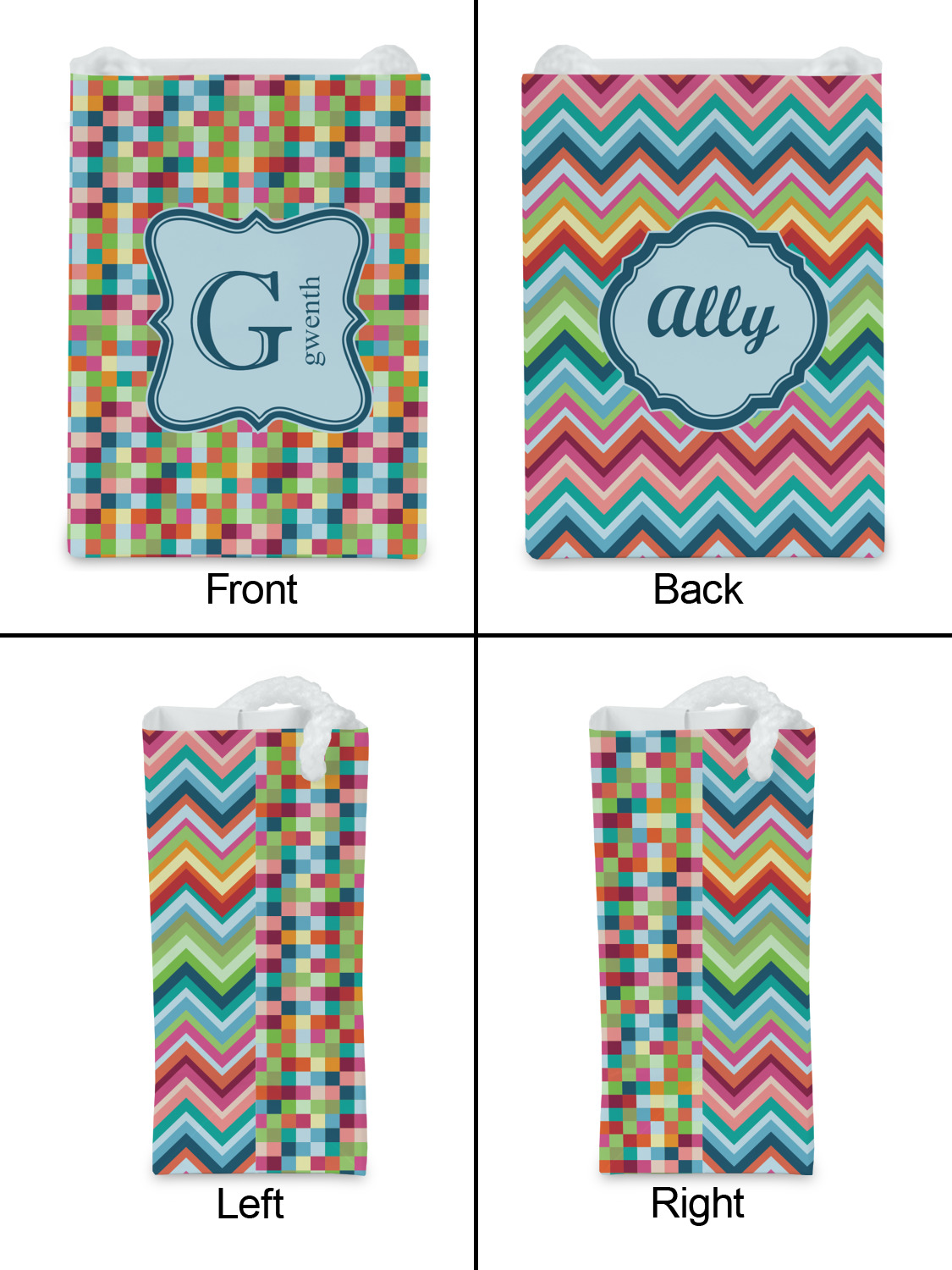 These jewelry gift bags are available in two finishes - matte or gloss. The are digitally printed in full color, then cut down to size, scored & folded. A single handle is attached.