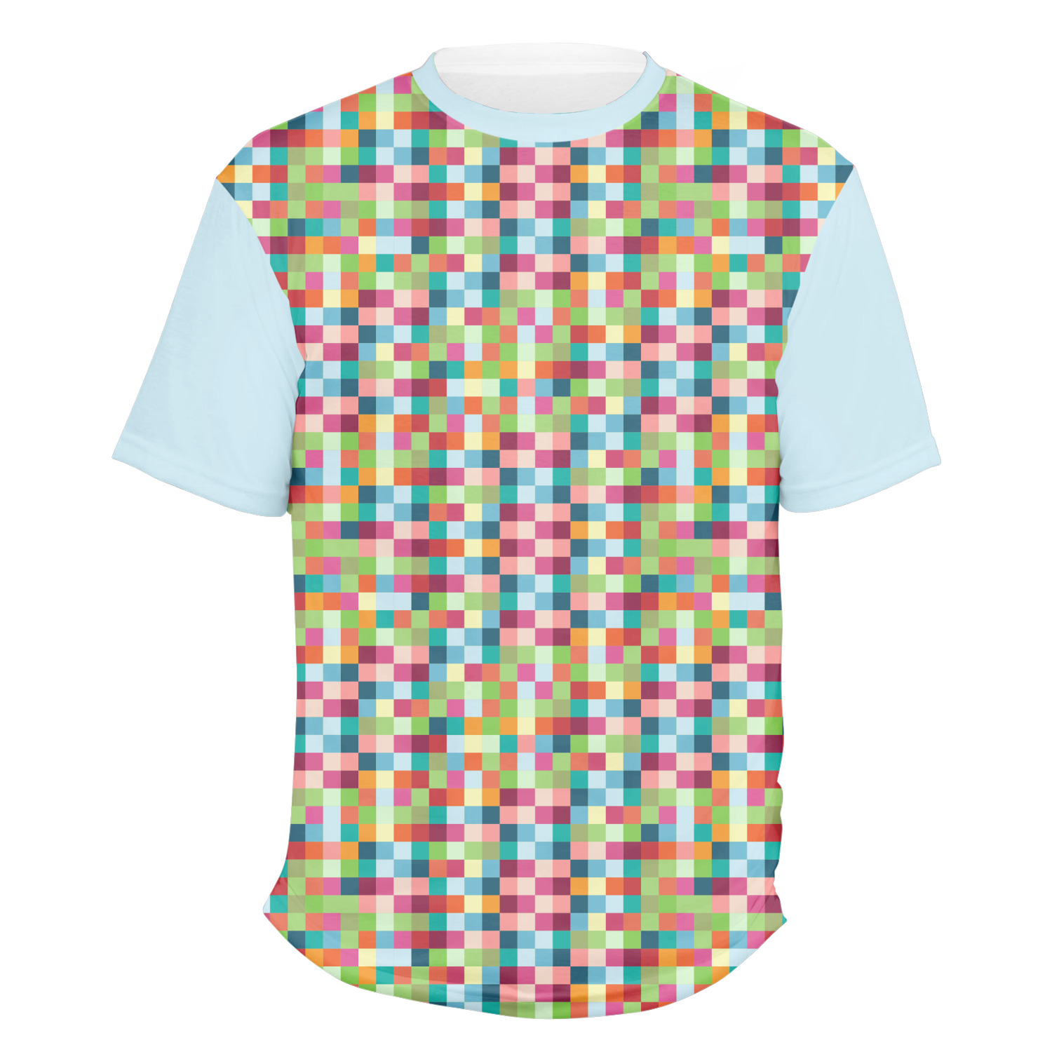 Our mens t-shirts are a lovely jersey knit polyester. They come in 6 different sizes ranging from Small to XXX-Large. These shirts are your basic comfy crew neck t-shirts that look good on anyone. You are able to personalize the sleeves, front, AND back! Isn't that awesome?! Make everything one color or all different. The choice is yours.