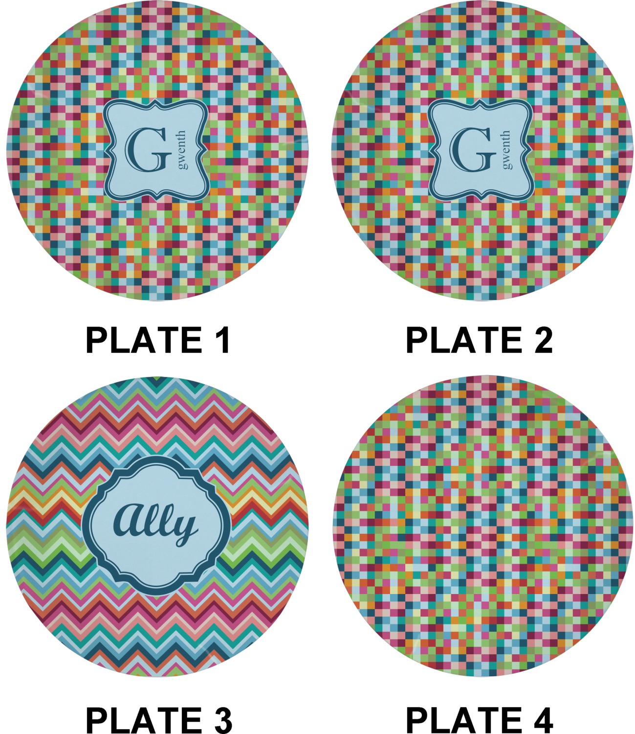 With a of designs and patterns, these plates are completely customizable. Choose a foodie design, complete with red-hot chili peppers, or go classic with stripes or plaid. Include your monogram or family name to make sure these plates never get lost at parties!