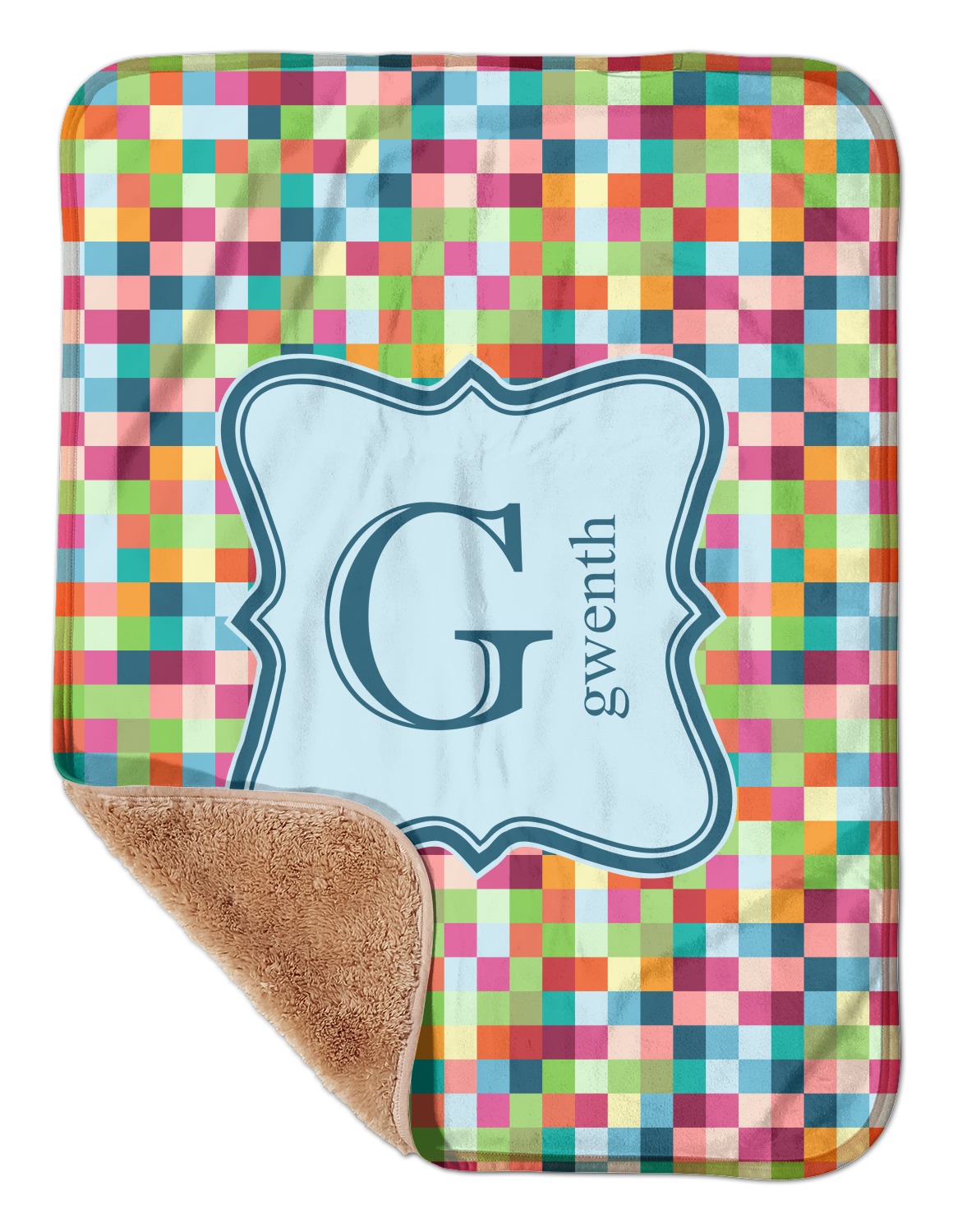 These toddler blankets are made of two different materials; the front side is made of a velvety, minky-like material that displays your customization and is perfect for a baby's delicate skin. The underside is crafted from a fluffy, sherpa fleece, and bears a classy, tan color. The dual texture gives your baby added comfort, as both sides are incredibly soft and plush. The corners of this blanket are rounded, and the ribbing of the blanket is a tan color, which complements the sandy color of the sherpa fleece. At approximately 30 by 40 inches, this custom baby blanket is the perfect size for babies and toddlers.