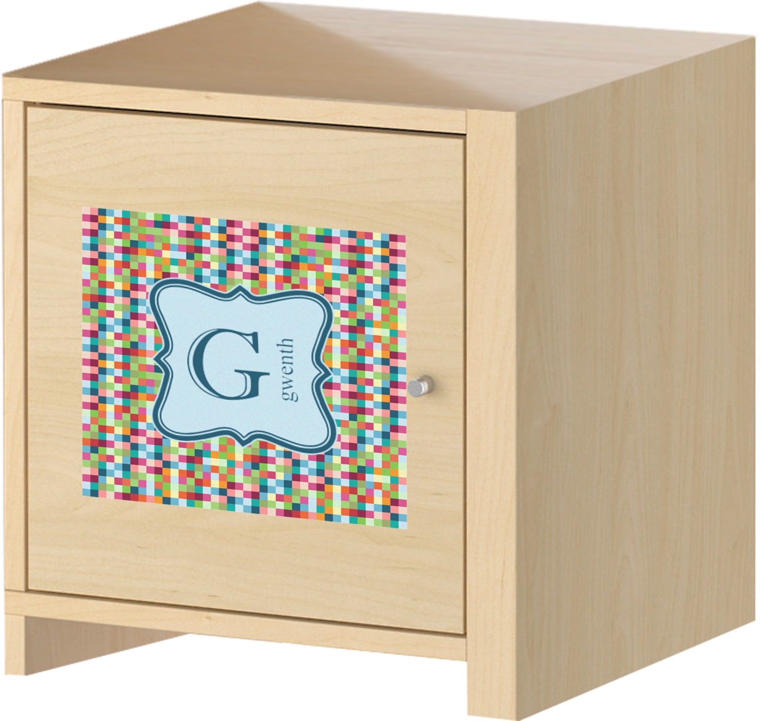 Modern meets retro meet techie! This modern pixelated design has a wonderful multicolored retro look to it. The decorating choices are endless with all these gorgeous colors.