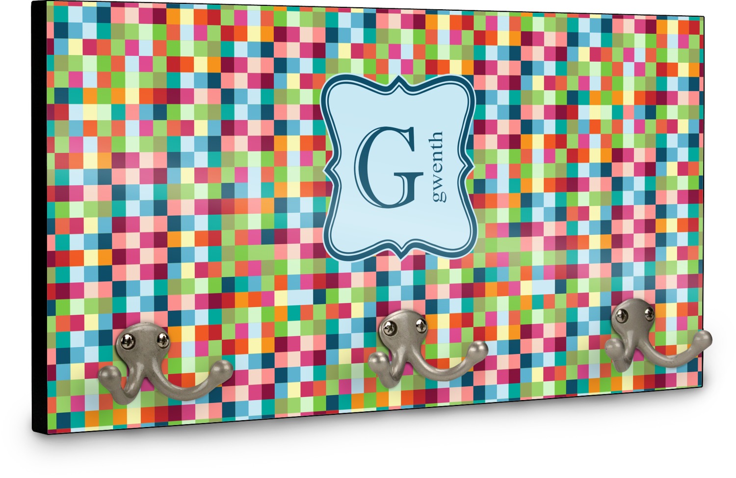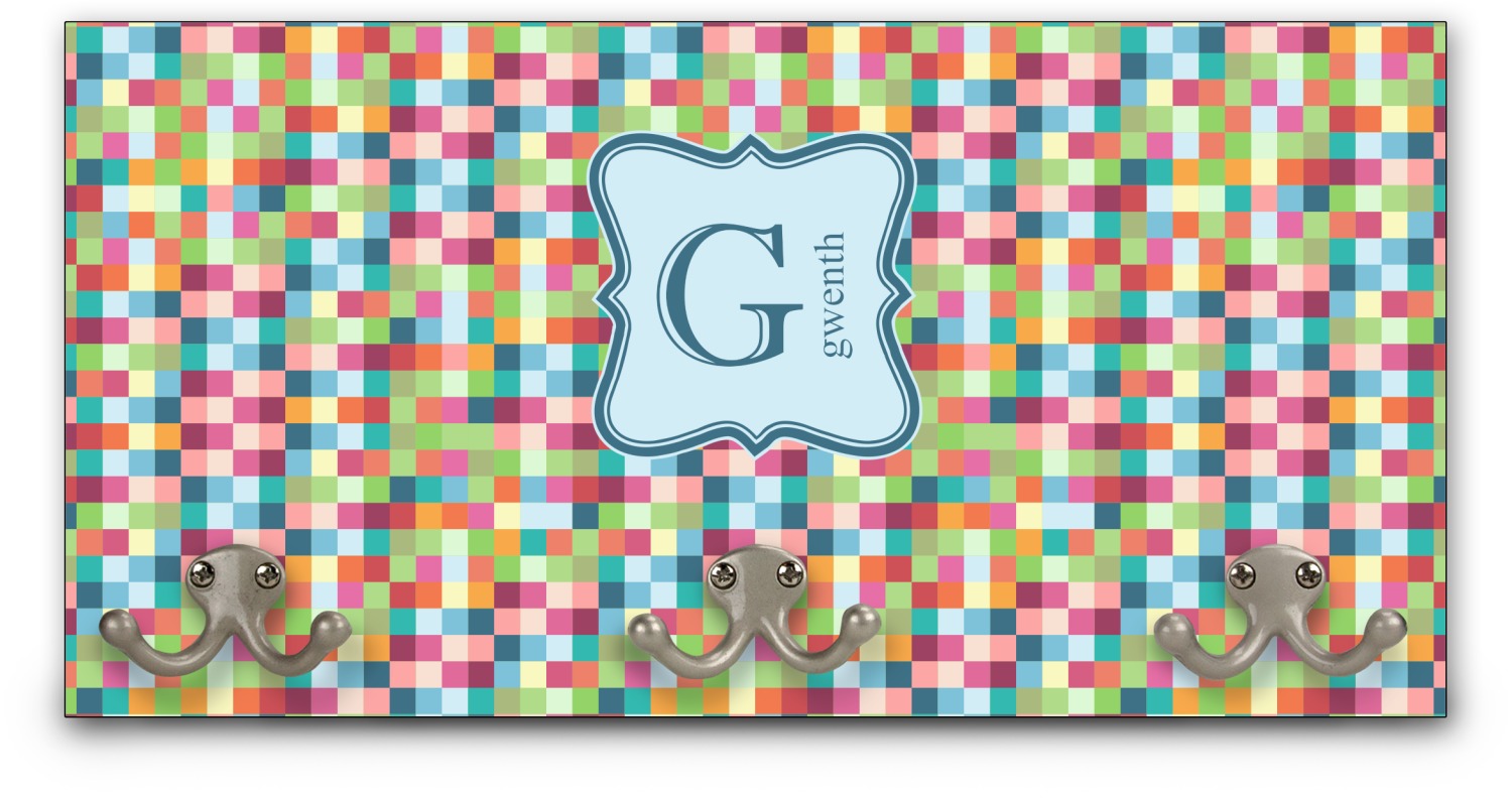 This coat rack is the perfect way to add some personality to your wall or entryway. The board is made of a strong maple that is approximately 16" x 8". The three 2-prong hooks are a sturdy metal that have three screws attaching them to the board. Your design is printed right onto the front of the board while the back and sides are a simple black.