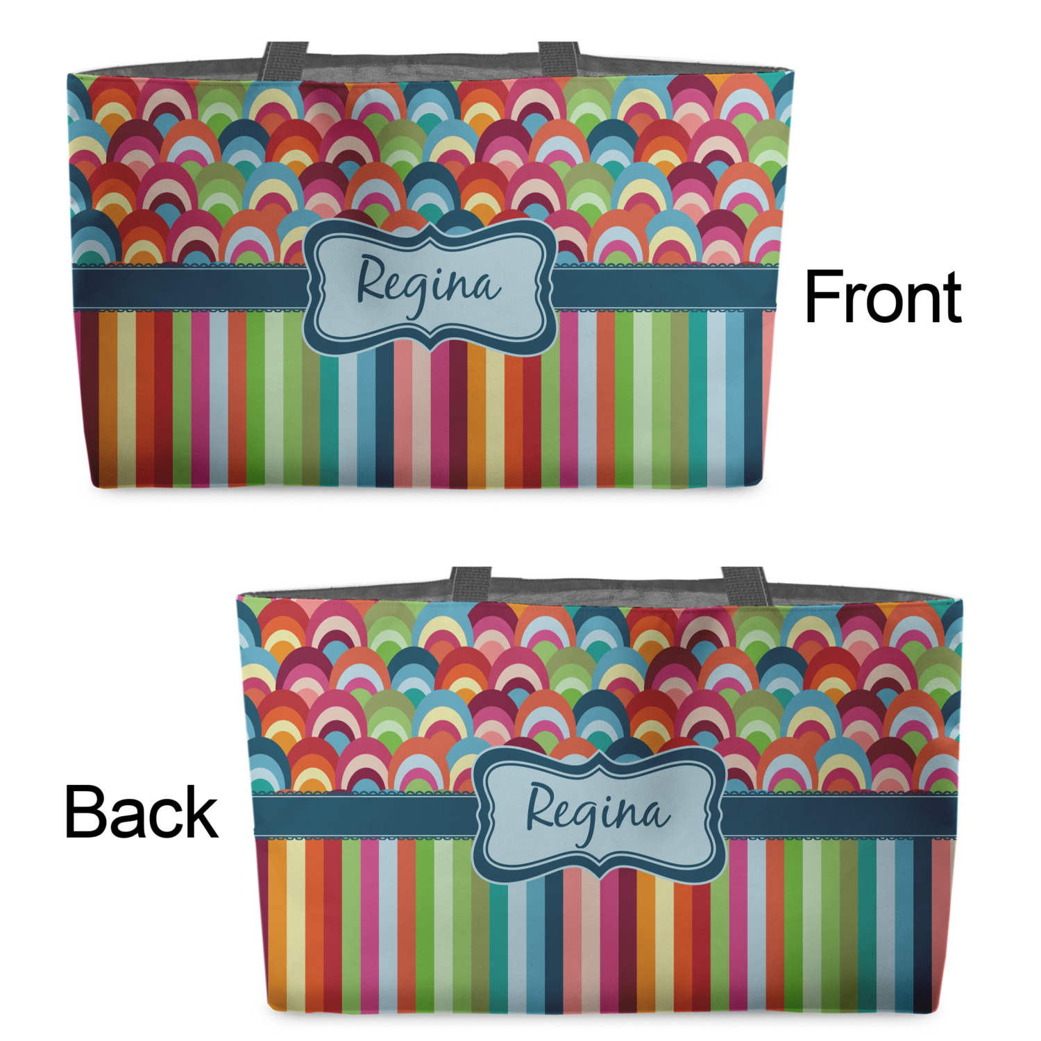 These beach totes are handmade here in the USA. Fabric is printed with your design. The tote is then sewn from the fabric pieces, lining and handles added.