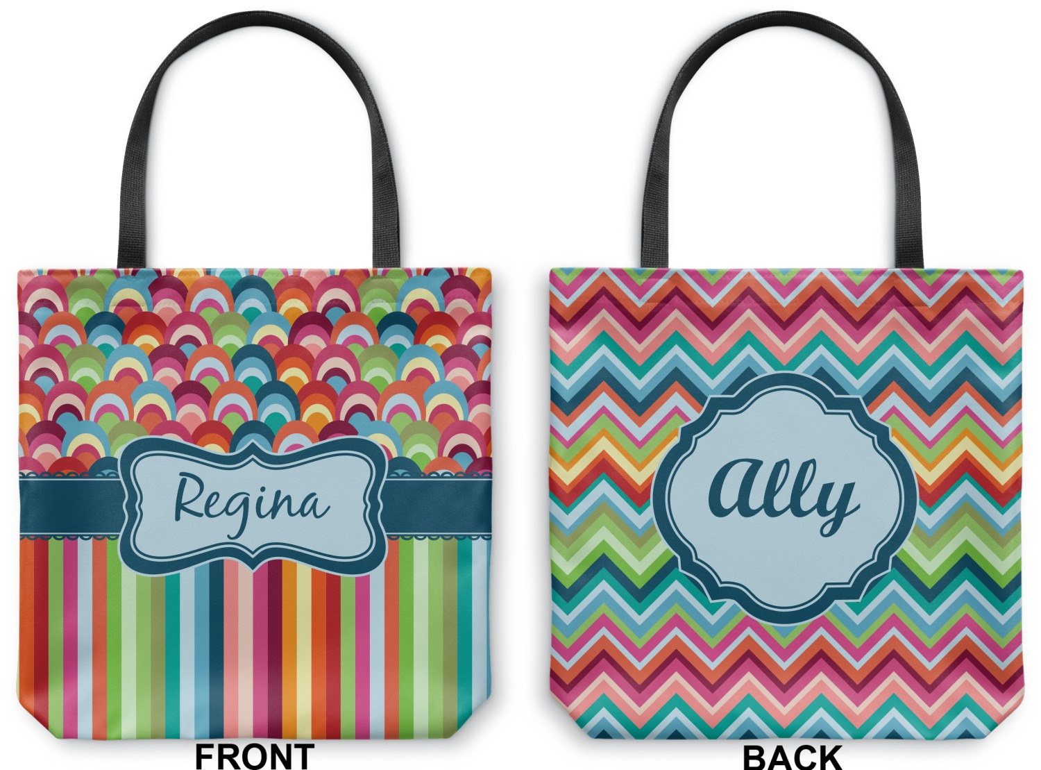 Our all purpose Canvas Totes bags are available in 3 sizes and in hundreds of different designs with many different prints & patterns, which are available in many different colors. You can customize the labels, the ribbons, the personalization styles and of course the fonts.