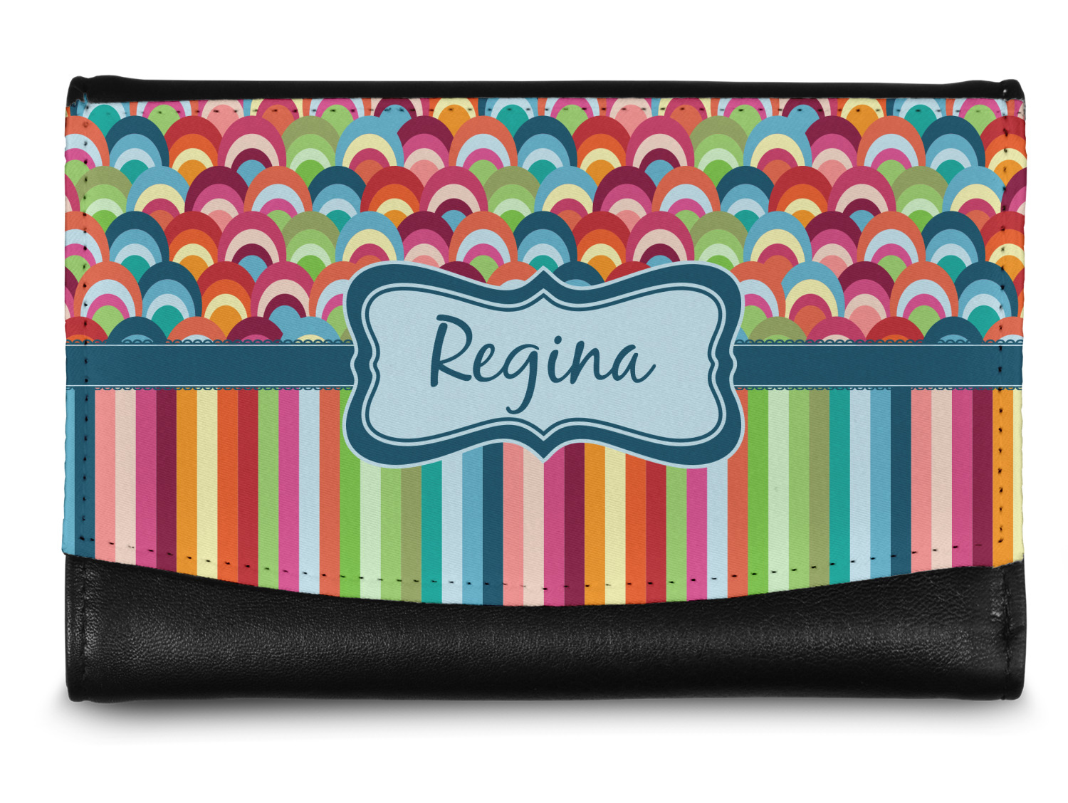 The compact size of this wallet - 5.5in wide, 3.5in tall and 0.75in thick when folded - makes it perfect to hold in hand and small enough to fit in a clutch or a normal size purse. The outside flap is customized with your choice of artwork and closes with a snap closure - with two different snaps to allow it to be adjusted when storing more items - to securely fasten the flap.