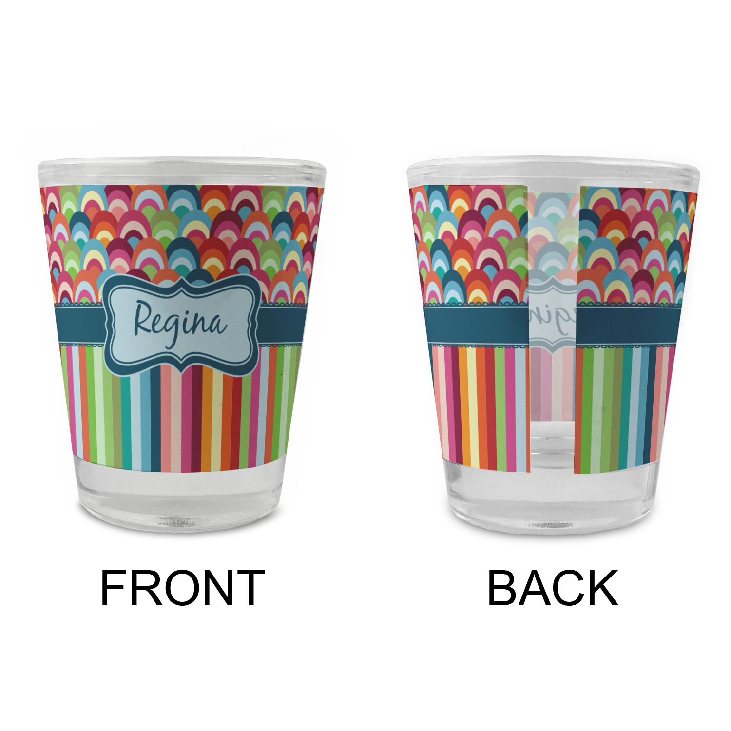 Made with frosted glass, these shot glasses are printed in full color with the design of your choice. They are a standard 1.5oz shot glass and are 2.4" tall. The print is wrapped around the shot glass in a full wrap and boldly displays your customization.