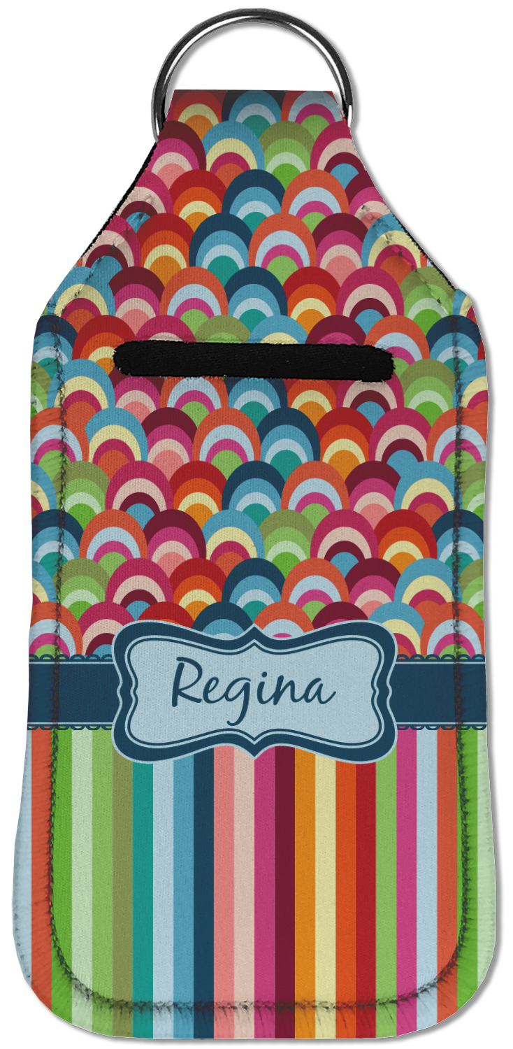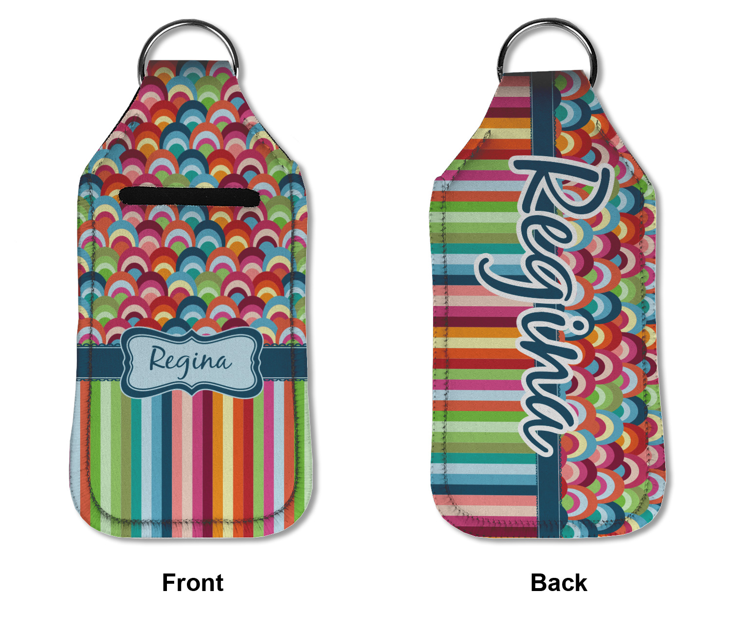 Each hand sanitizer holder comes with its own empty travel-sized, refillable hand sanitizer sure to fit snug in your customized sanitizer case! Our hand sanitizer cases are a durable, yet soft neoprene material sure to last any daily activities or travel agenda. Customize and personalize a hand sanitizer bottle holder with one of our two sizes - small (4.25" x 2.25") or large (5.5" x 2.5"). Each travel sanitizer holder comes with a keyring for attachment on bags, keys, or more!