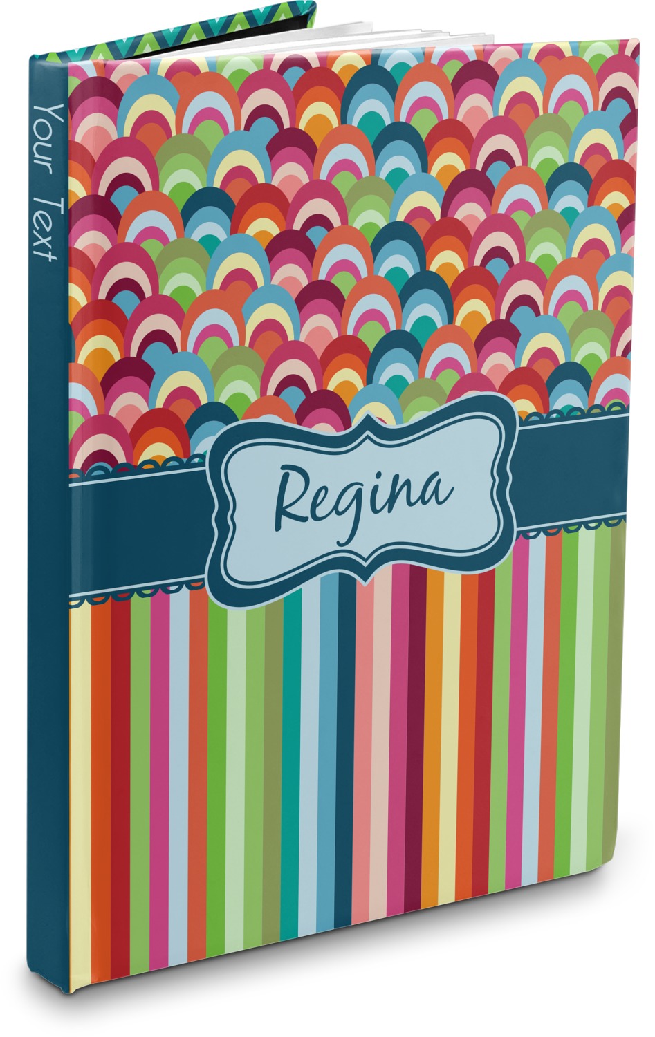 The hardcover of this personalized journal is covered with a smooth, matte, laminate coating. The unique laminate of the covers gives the hardcover notebook a smooth, sleek feel. Filled with 75, lined, white pages, this hardbound notebook has enough room for your reminders and notes. For your convenience, the pages have been perforated, which guarantees an easy tear and removal. Your customization is printed across the entire cover of the book, while the interior is black in color.