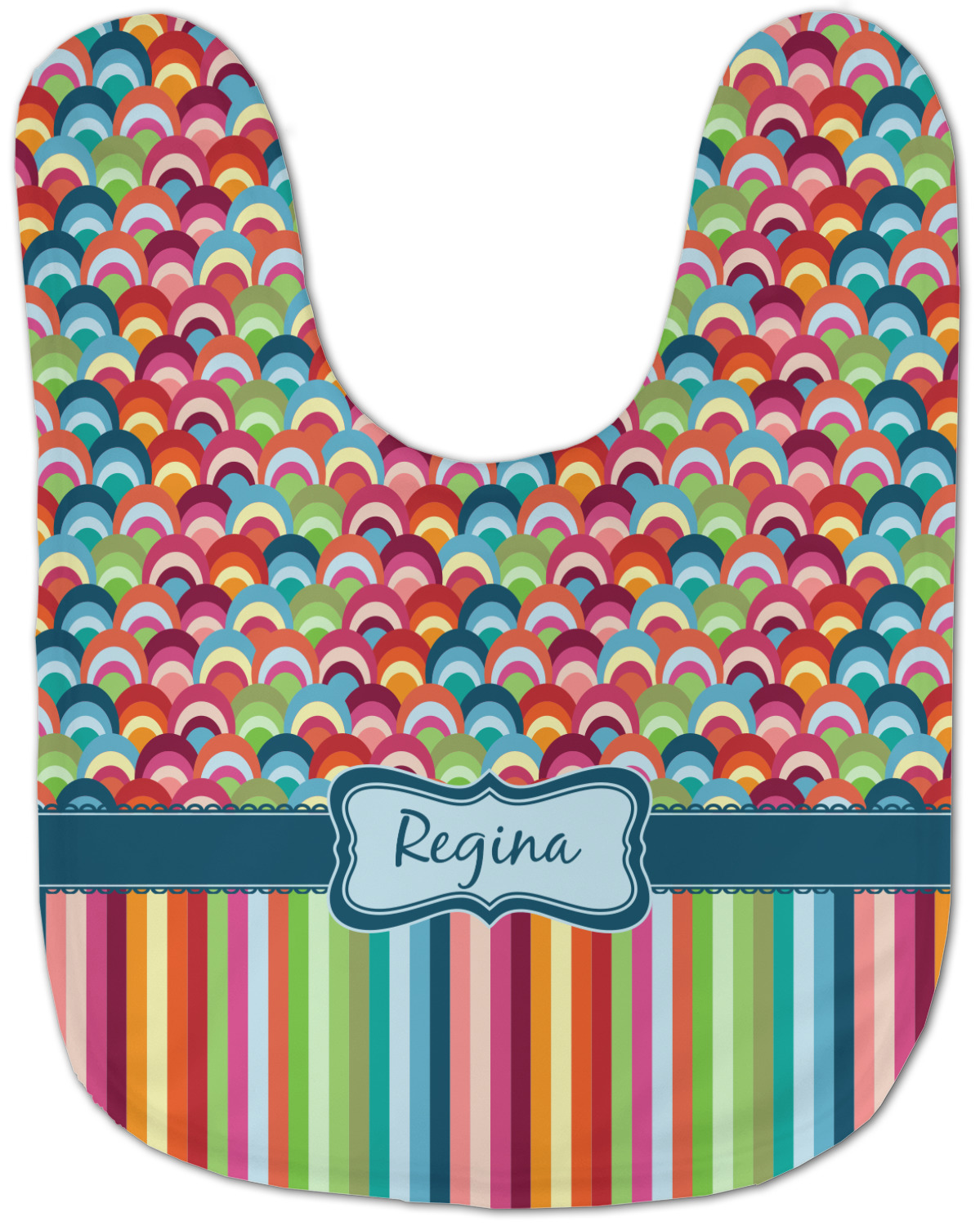 Made of soft polyester, each customizable bib hugs comfortably around the neck to catch every drip and drool. Each bib design is printed with baby-safe ink and finished with a secure stitch pattern and velcro clasp. We carry two customizable bib styles -Microfiber Velour and Jersey Knit.