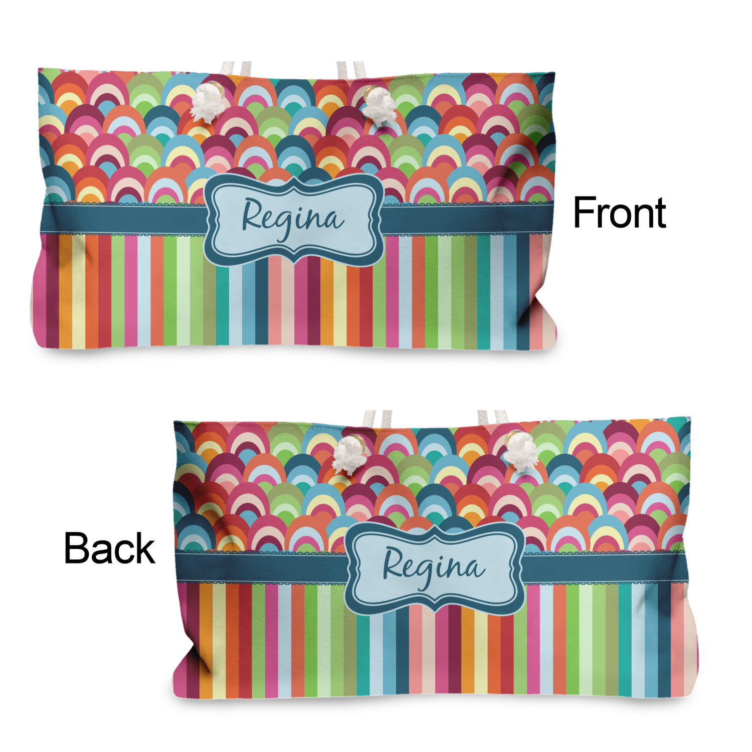These weekender totes can be customized front and back. The totes are full all over print - so the choice of how background are endless - from beautiful floral or leaf patterns to geometrics or some classic Van Gogh artwork - the possibilities are endless. The totes can also be decorated with photos and logos.
